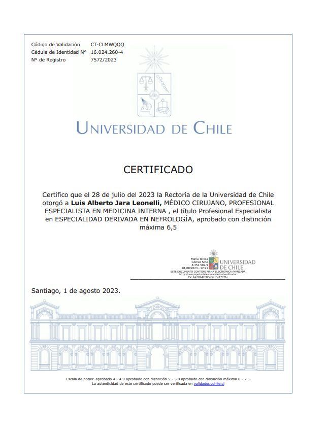 Nefrólogo formado en la Universidad de Chile. Experiencia laboral en Hospitales y Clínicas.