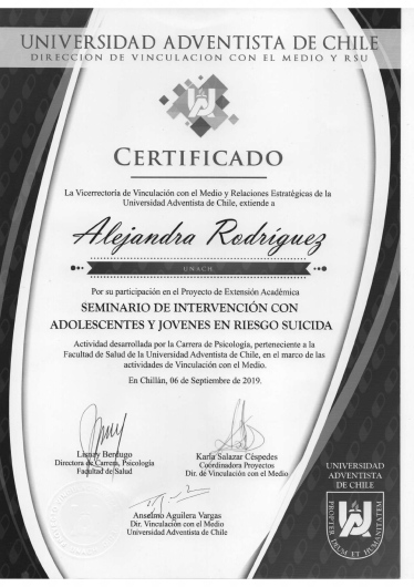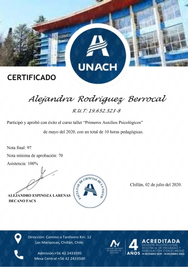 La Ale definitivamente me supo entregar un espacio seguro y me brindó las herramientas que necesitaba para poder avanzar en mi proceso, jamás me hizo sentir juzgada por algo y siempre me incentivó a poder expresarme con seguridad en sus consultas. Pasé por un proceso bastante difícil en mi vida, el cuál no hubiera podido enfrentar de la misma forma sin su apoyo. Actualmente ya me encuentro de alta hace aprox. un año, y en la actualidad, estoy viendo los frutos de todo lo que se trabajó, y sigo utilizando las herramientas que me pudo entregar en mi vida cotidiana. Me alegra comentar que después de las sesiones con la Ale mi vida cambió, yo cambié, yo mejoré. Se bien que las sesiones son 50/50, pero como yo puse mi esfuerzo la Ale también, y es algo que le agradeceré toda la vida. Honestamente, un párrafo no puede definir en la cantidad de cosas en las que me ayudó, pero si puedo decir con seguridad, Alejandra Rodríguez es una excelente profesional, así que sí, agenda esa sesión.