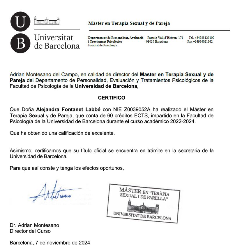¡Hola! Soy Alejandra, psicóloga con Máster en Terapia Sexual y de Parejas y enfoque sistémico-narrativo.