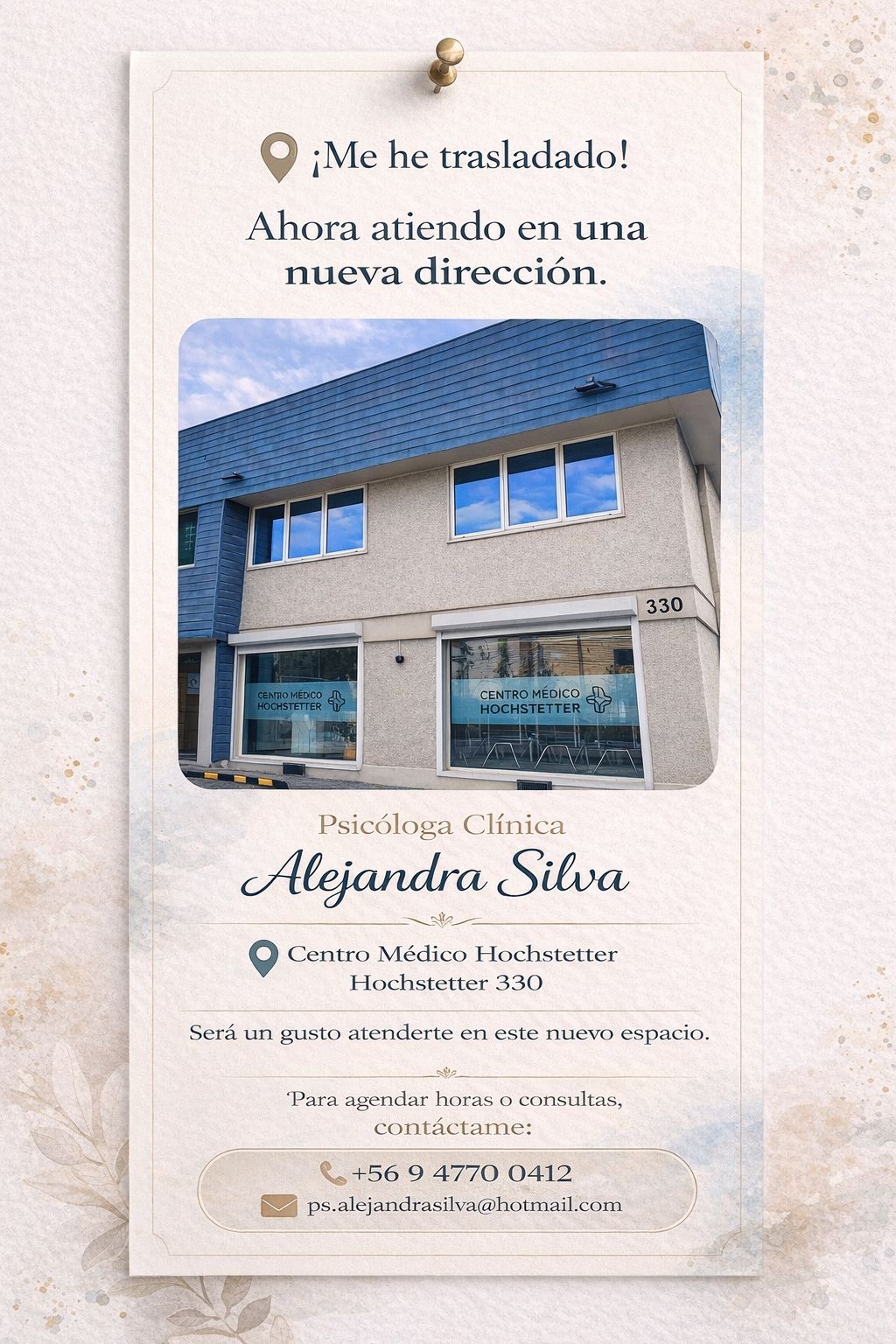 Me he Trasladado, Desde Marzo, mi Consulta estará ubicada en el centro Médico Hochestetter #330, Temuco.