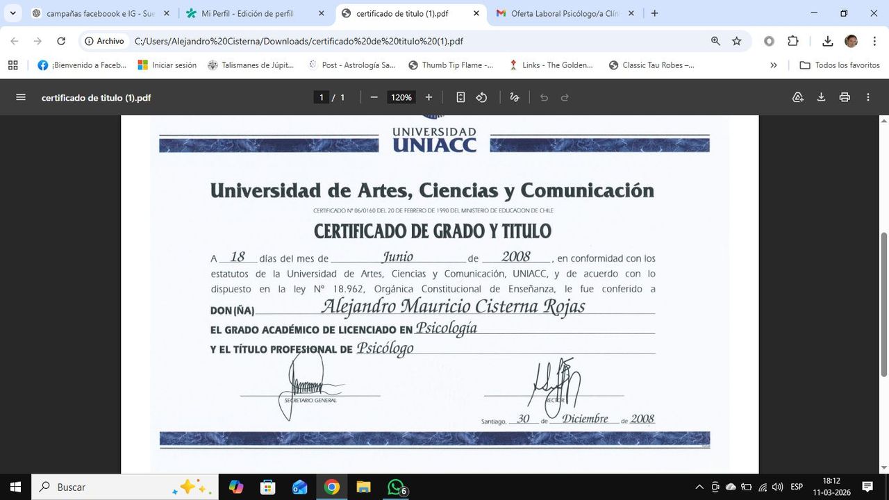Soy psicólogo clínico con bastantes años de experiencia en el acompañamiento de personas que enfrentan ansiedad, crisis emocionales y agotamiento psicológico.