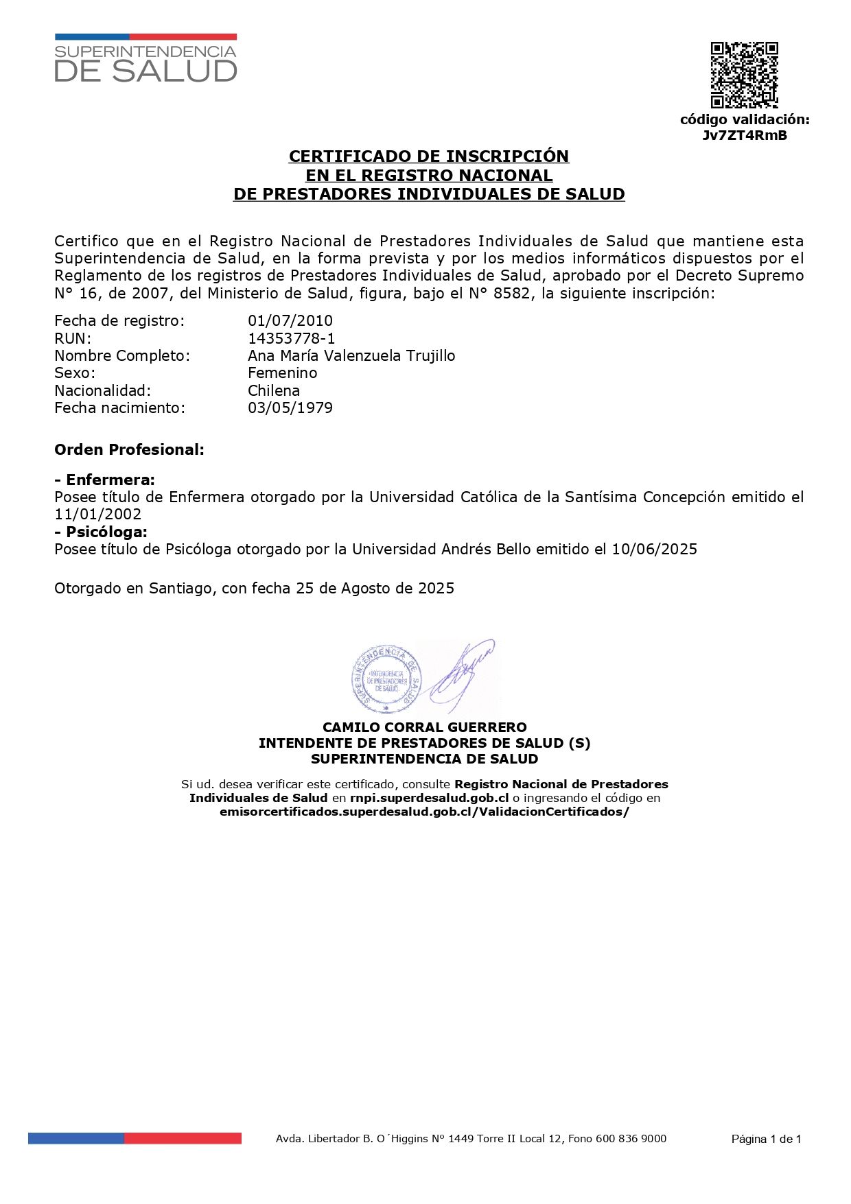 Excelente profesional , entrega de herramientas y orientación para el manejo del stress, persona muy cálida y cercana, afectiva la cual es importante para poder lograr la confianza y asi lograr resultados positivos. muy agradecida