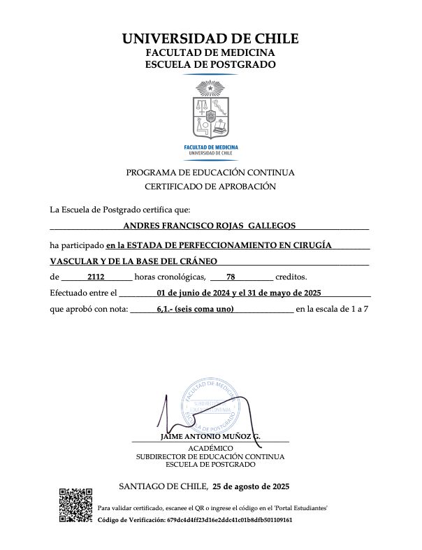 Neurocirujano especialista en patología vascular y de la base del cráneo.