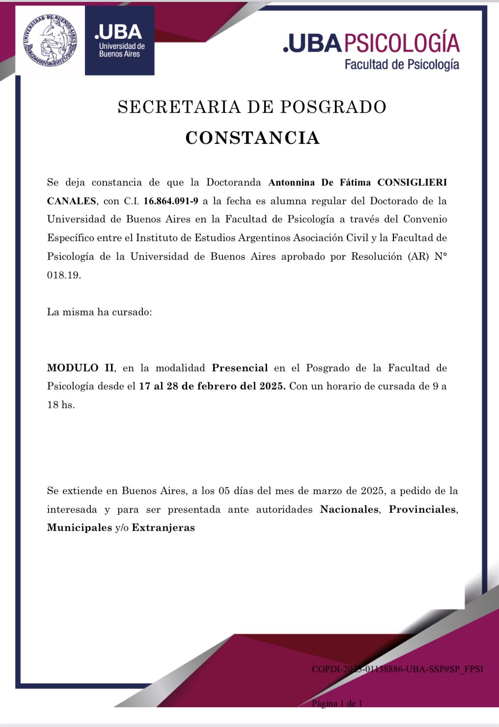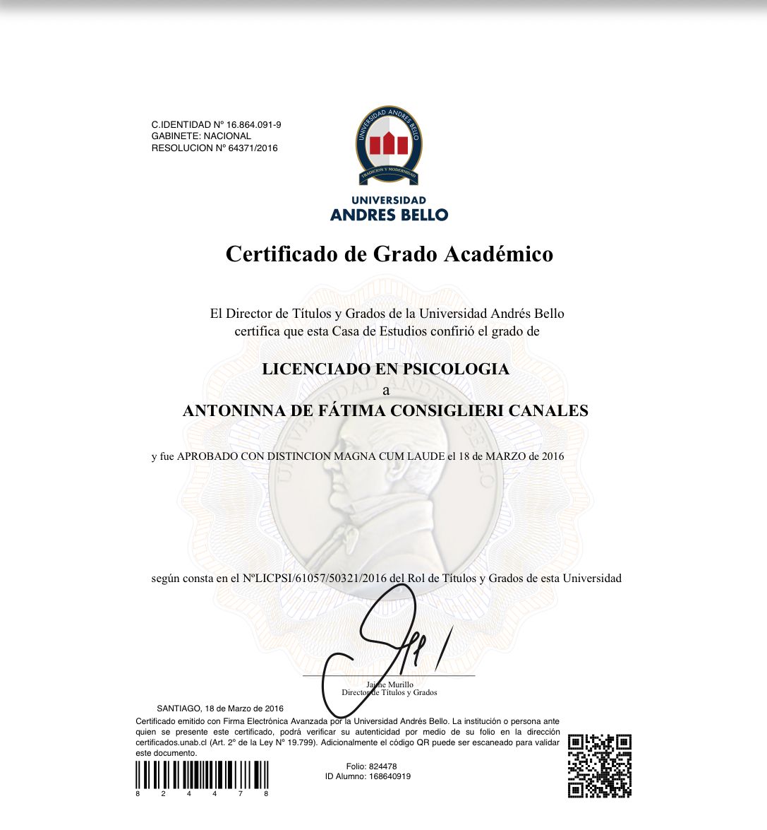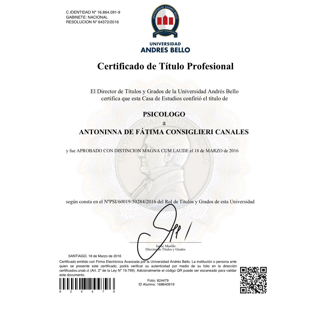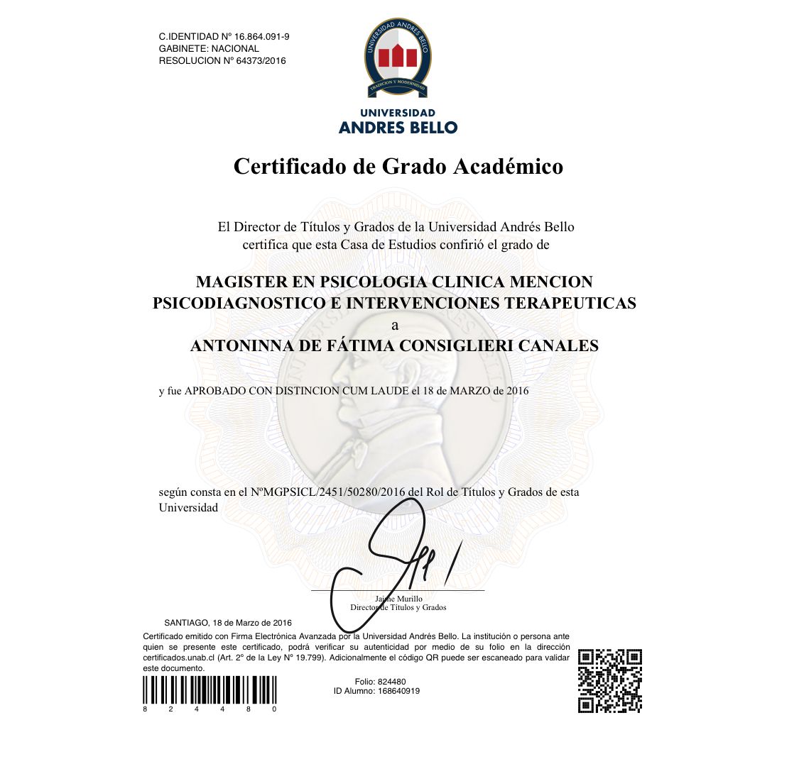 Psicóloga, Universidad Andrés Bello