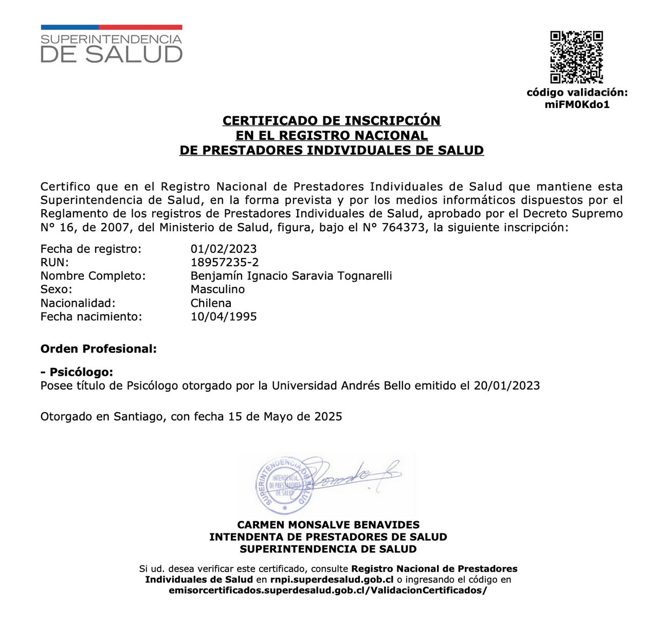 Agradezco mucho el trabajo de Benjamín, me sentía muy deprimida y he logrado sentirme mejor y trabajar en cosas que no sabía que me estaban afectando tanto.
