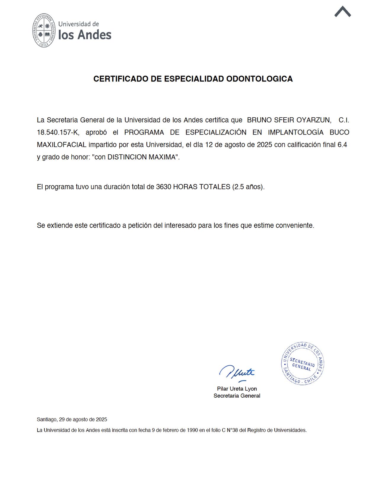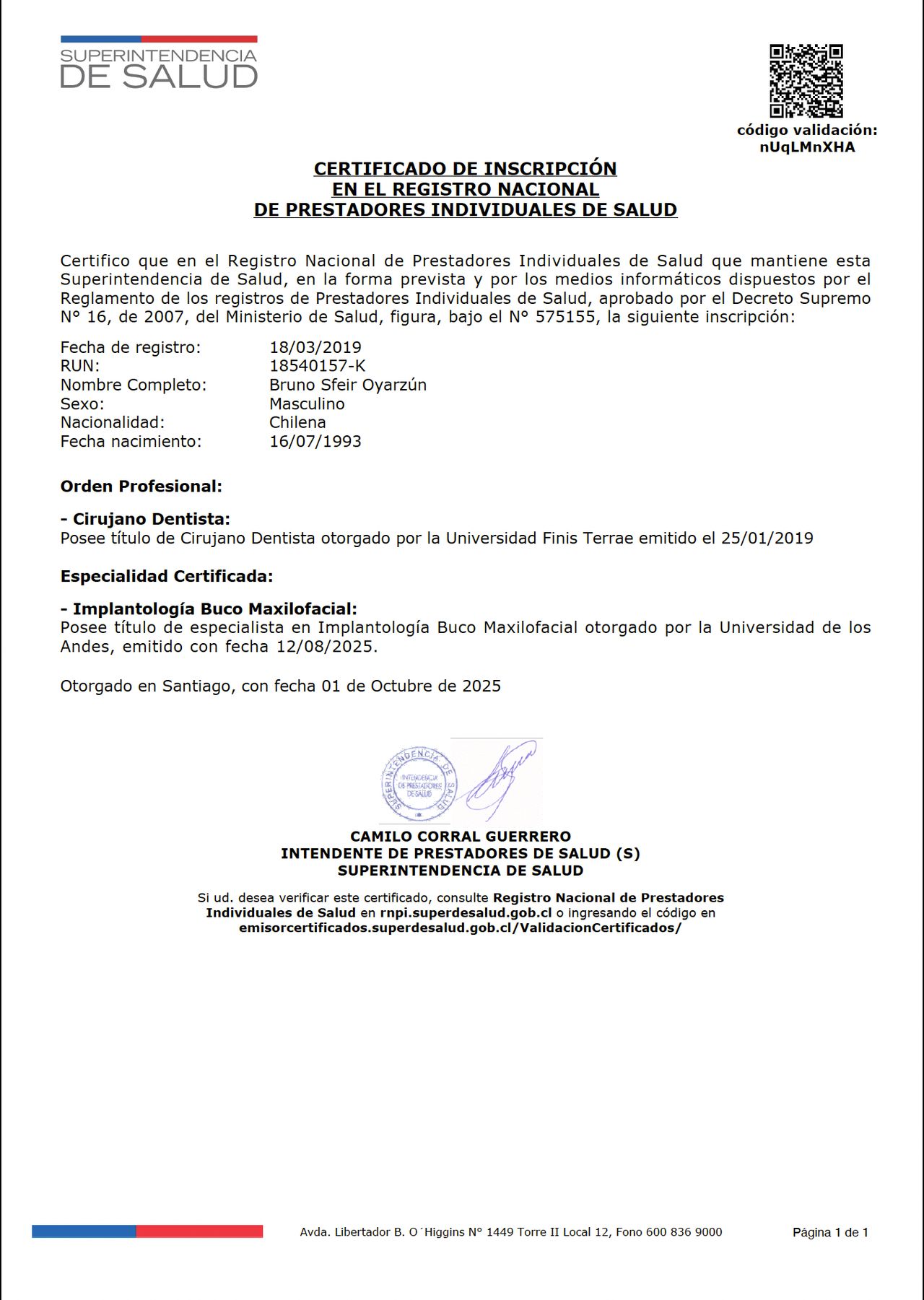 Excelente Dr. Bruno Sfeir, muy profesional. La clinica cuenta con última tecnología en el área de Implantes y Rehabilitación oral.