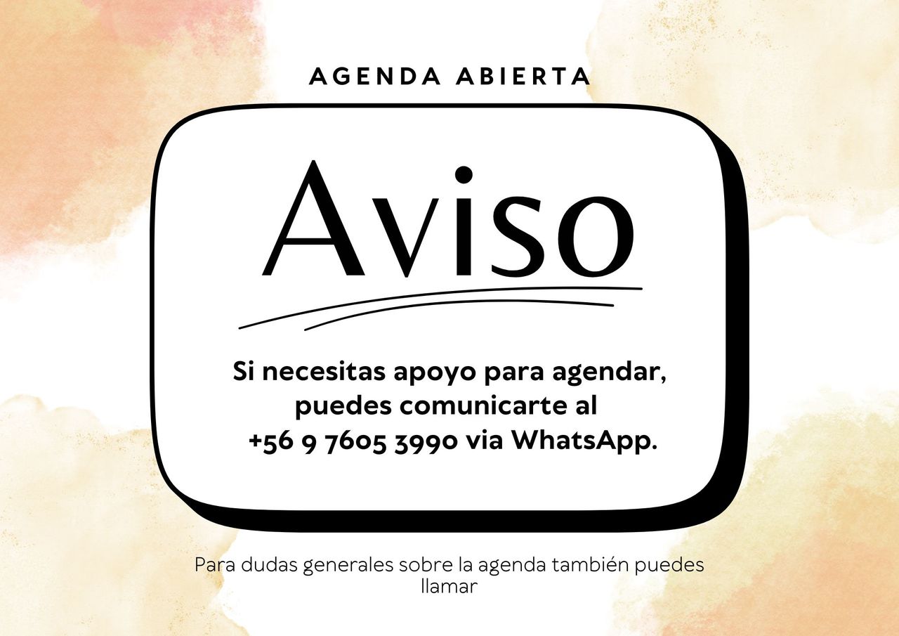 Si necesitas apoyo para agendar tu hora, puedes escribirme al Whatsapp.