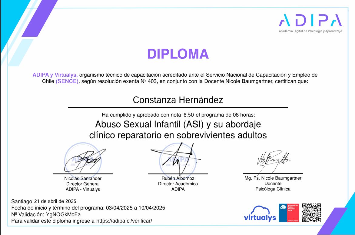 Hola, soy Constanza Hernández, psicóloga con formación psicoanalítica y un enfoque psicodinámico. Me considero una persona empática, comprometida y profundamente interesada en comprender la historia y las necesidades de cada paciente.