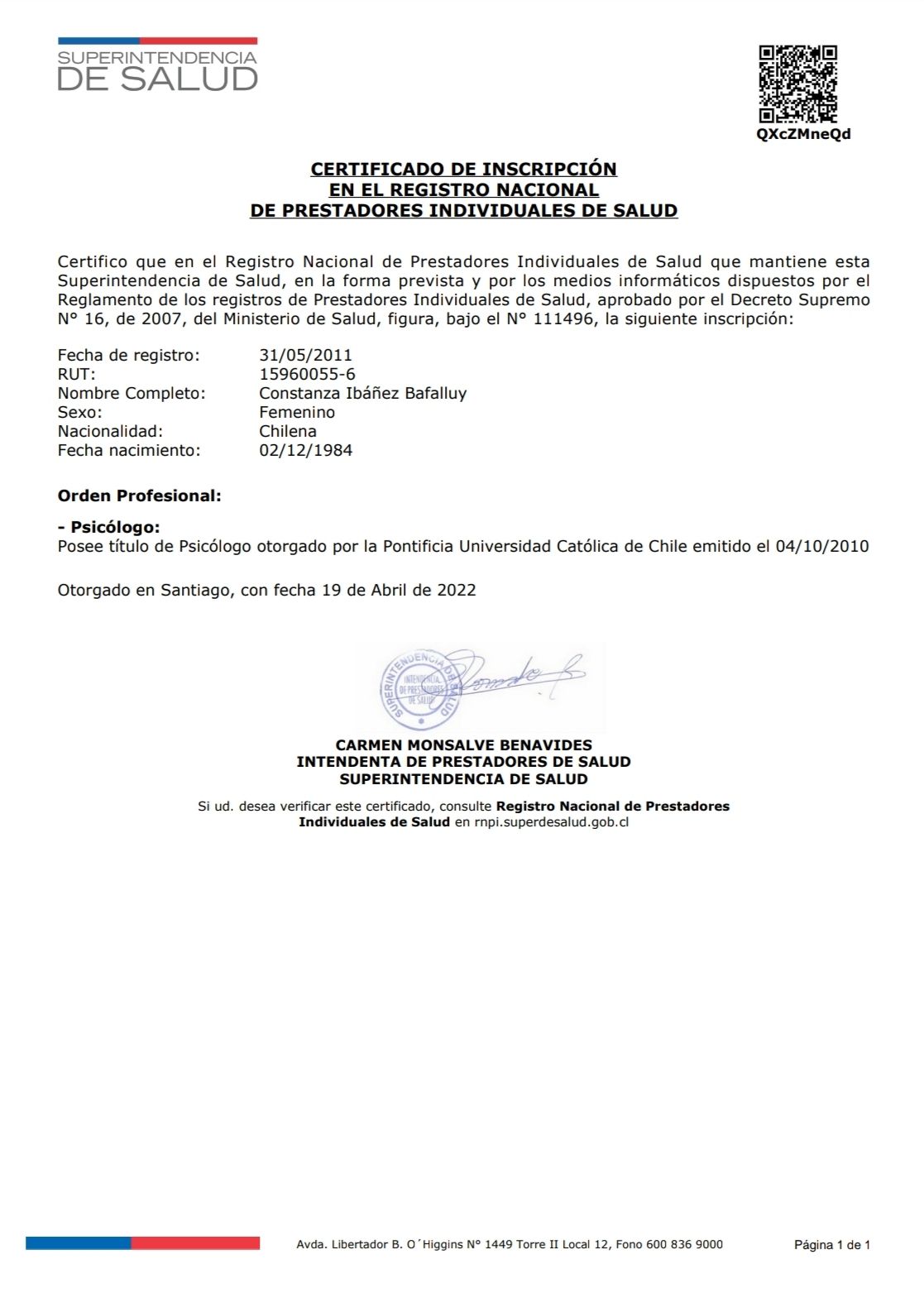 Providencia 1 dirección