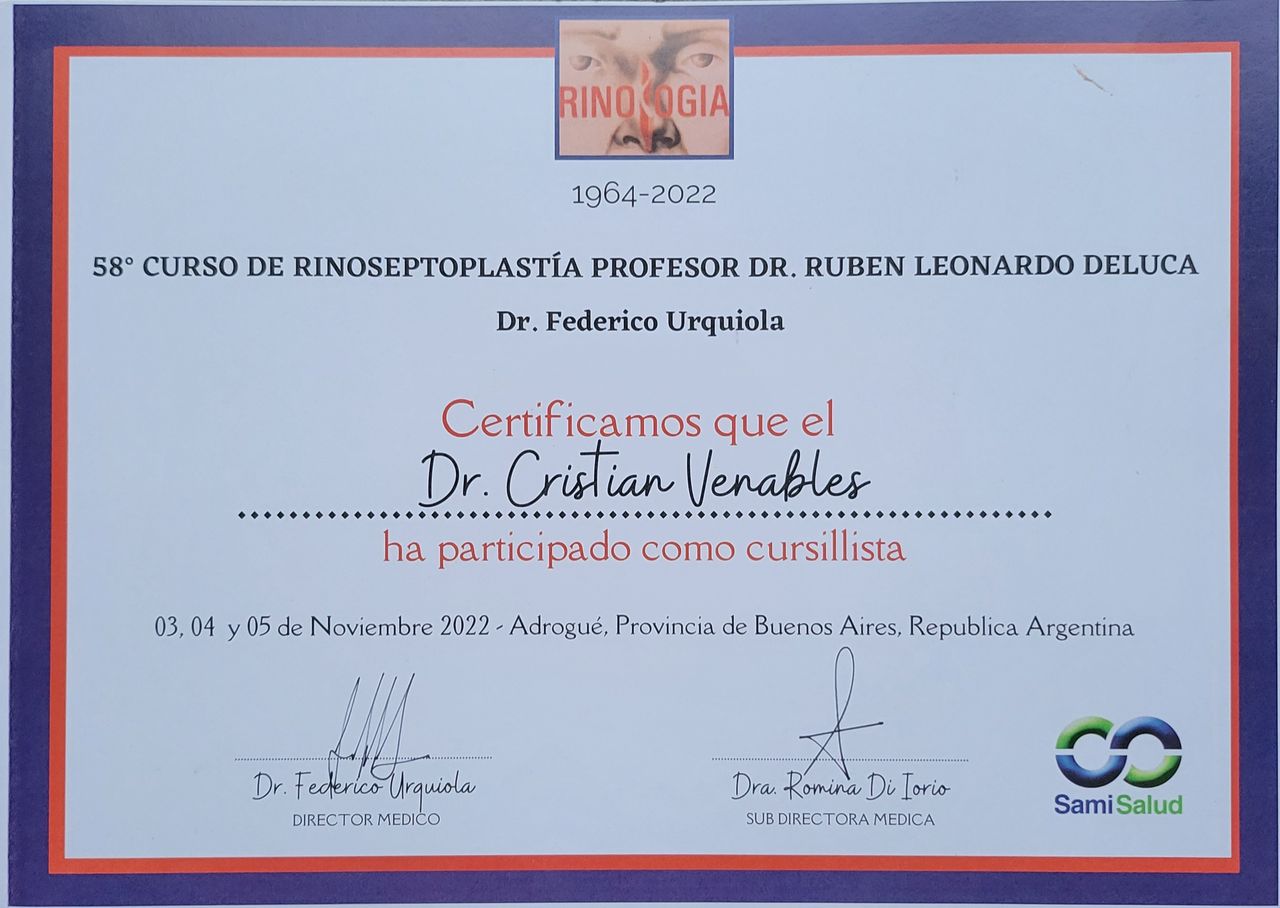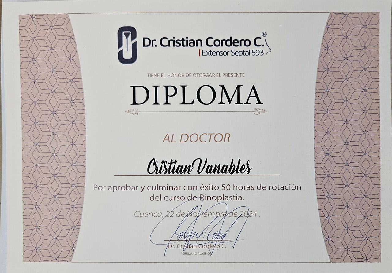 Doctor Cristián Venables, obtuvo el Postgrado de Cirugía Maxilofacial el año 2010.