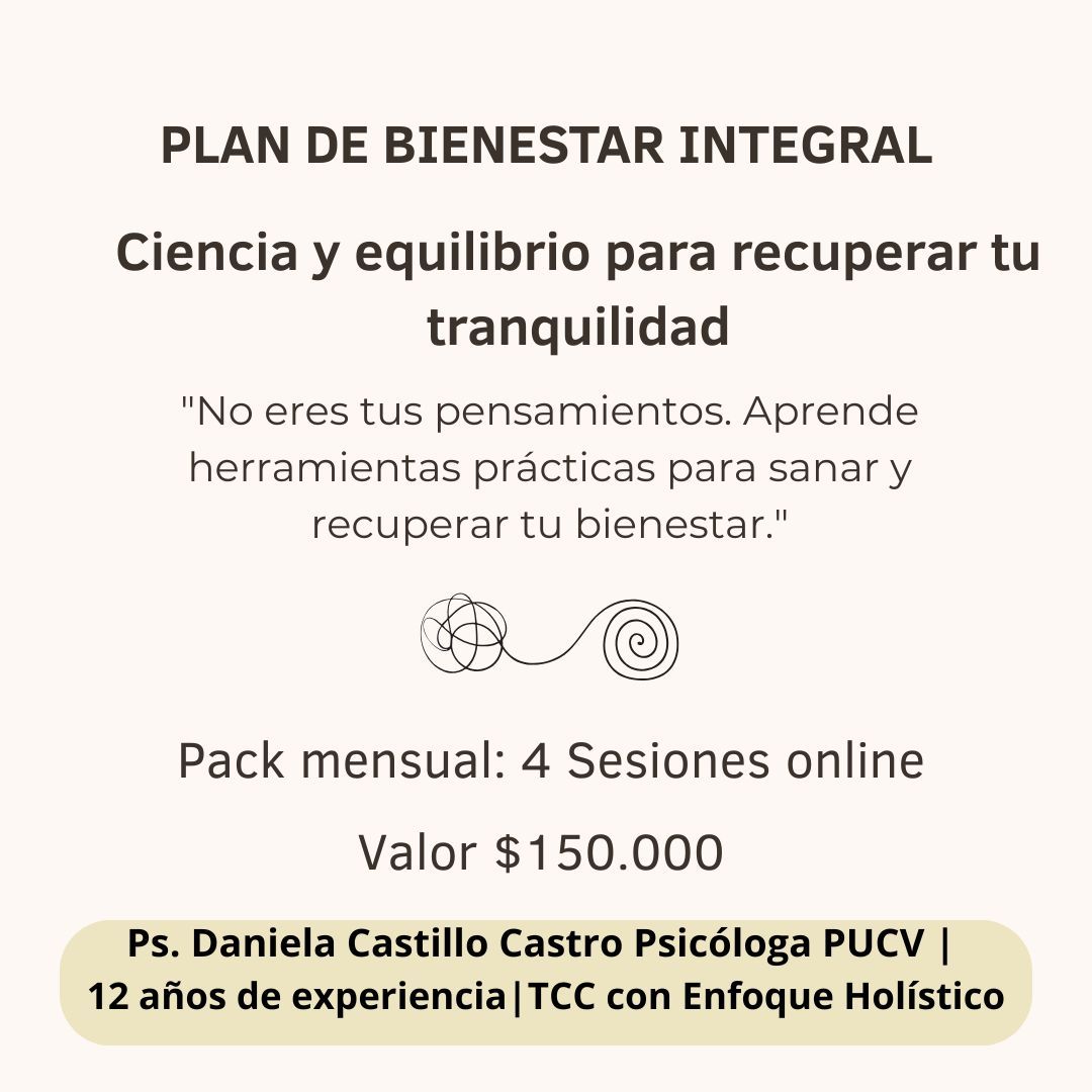 Para quienes buscan un cambio real y profundo, he diseñado el Plan de Bienestar Integral. Un espacio donde unimos la evidencia científica de la Terapia Cognitivo-Conductual con una mirada Holística, trabajando mente, cuerpo y alma en conjunto.
