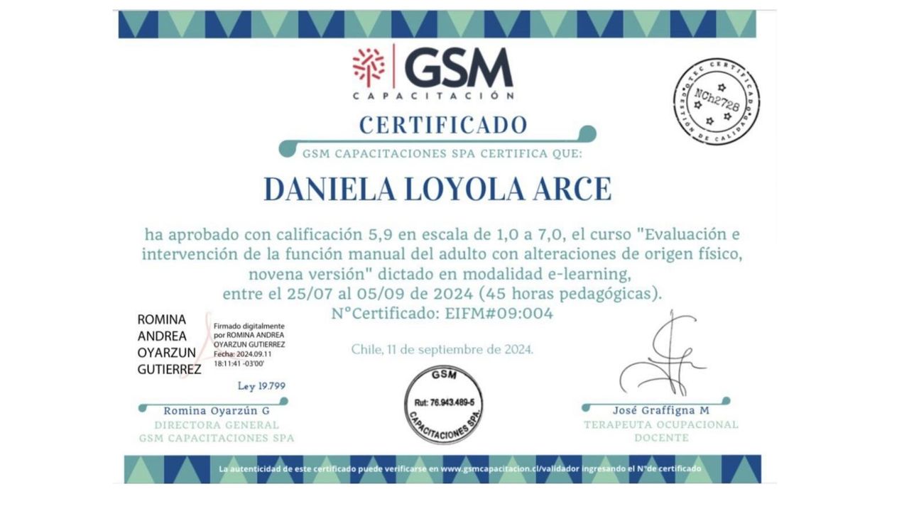 Llegué sin saber muy bien qué esperar, pero me sorprendió lo clara y cercana que fue la terapeuta ocupacional Daniela Loyola. Se tomó el tiempo de escucharme con total atencion y me dio ejercicios muy buenos que ya estoy aplicando.