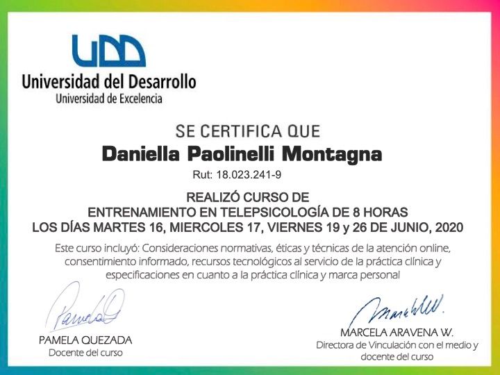 Valoro la visión aguda de Daniella en sus análisis, lo que me ha permito ir integrando poco a poco nuevas herramientas de afrontamiento a mis desafíos. Agradezco el clima de confianza que genera en su espacio terapéutico a través de una atención centrada en la persona. Gracias Daniella por tu profesionalismo.