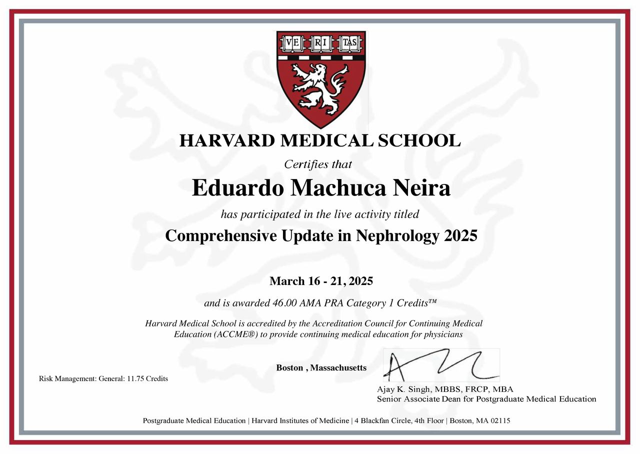 Nefrólogo clínico, docente e investigador con 27 años de experiencia, titulado en la Universidad de Concepción, especialista en Medicina Interna y subespecialista en Nefrología de la Pontificia Universidad Católica de Chile hace 18 años.