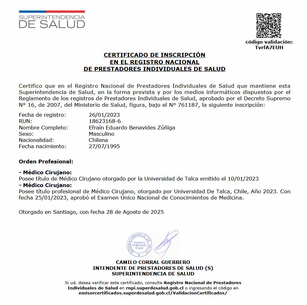 Excelente profesional, me explico muy detalladamente las indicaciones, el tratamiento que debo tomar, se tomó su tiempo para que entendiera todo