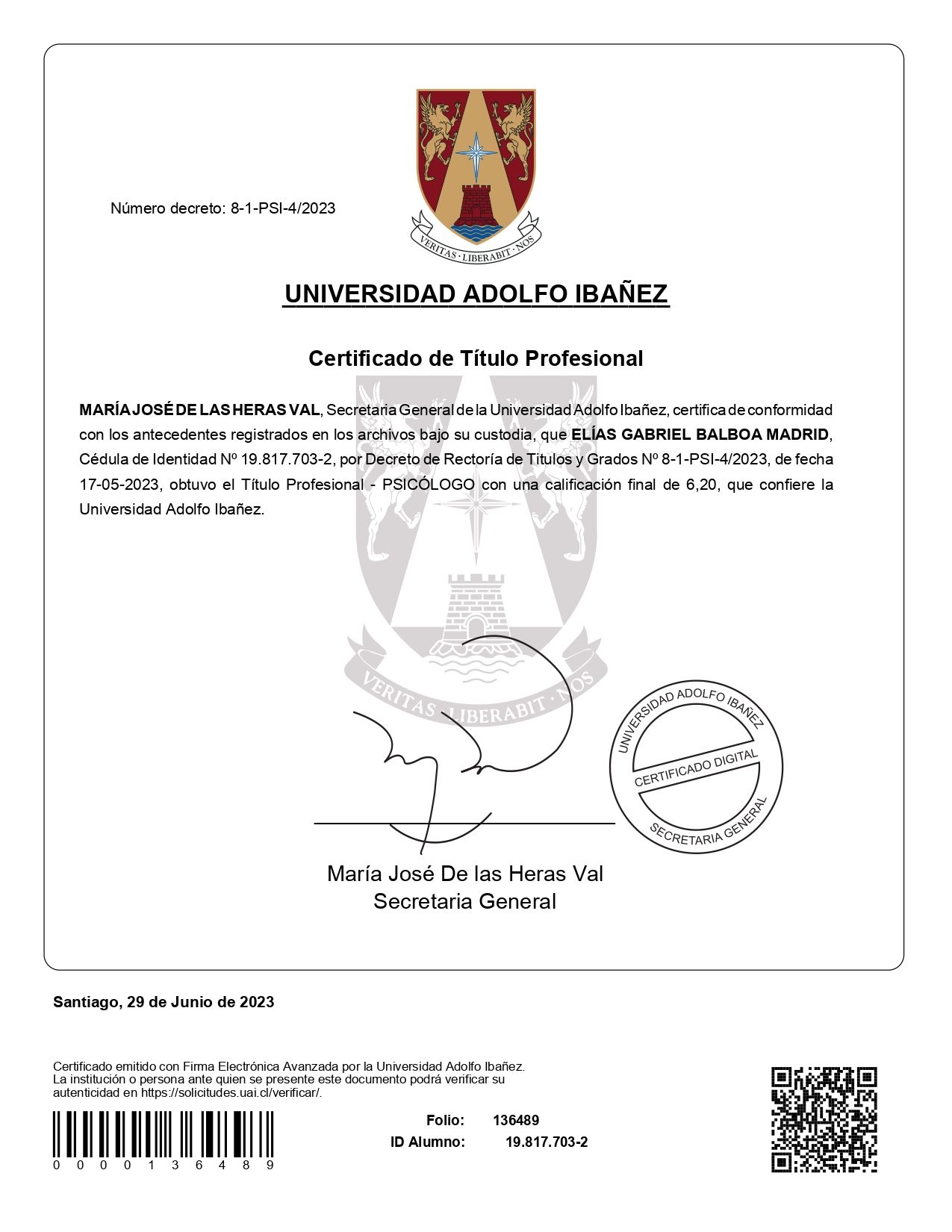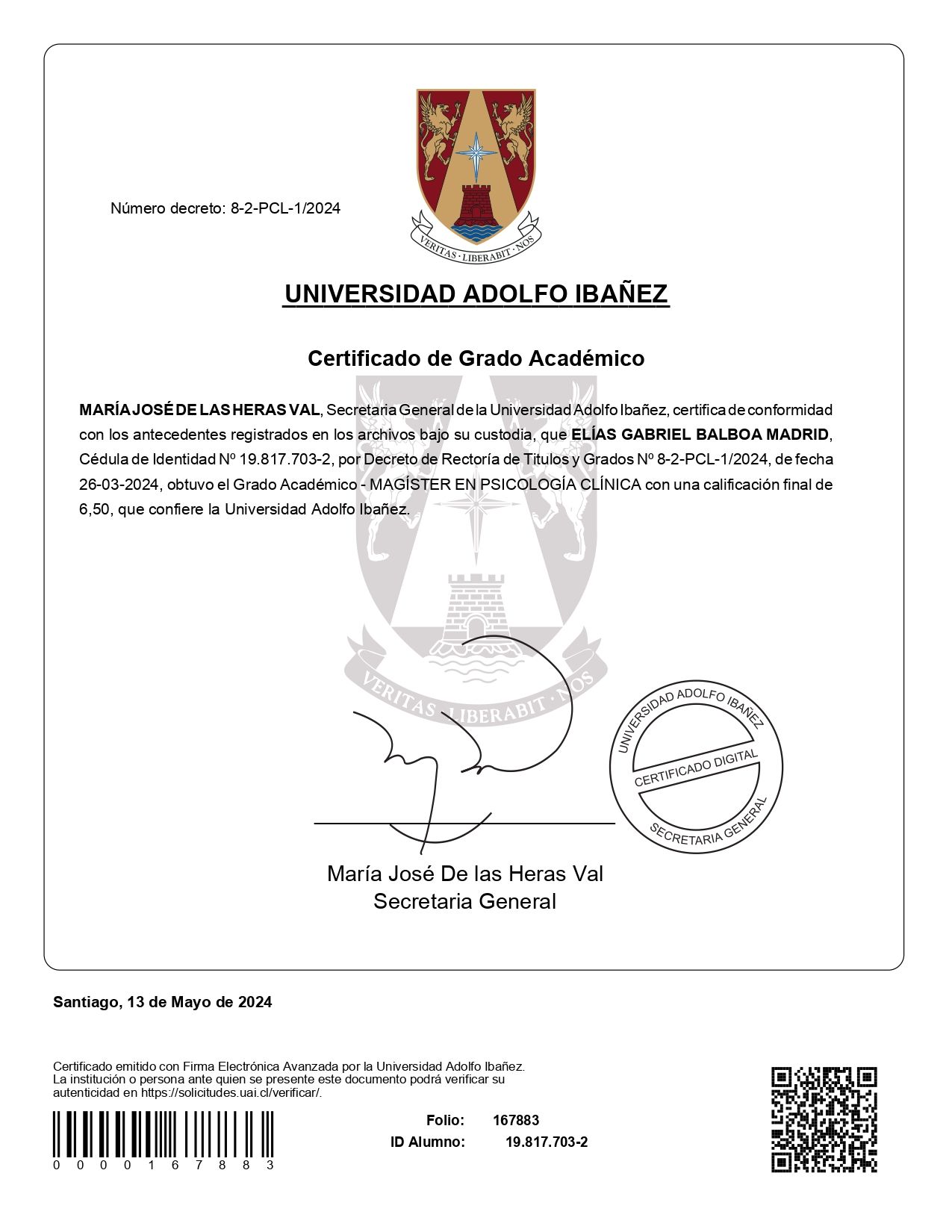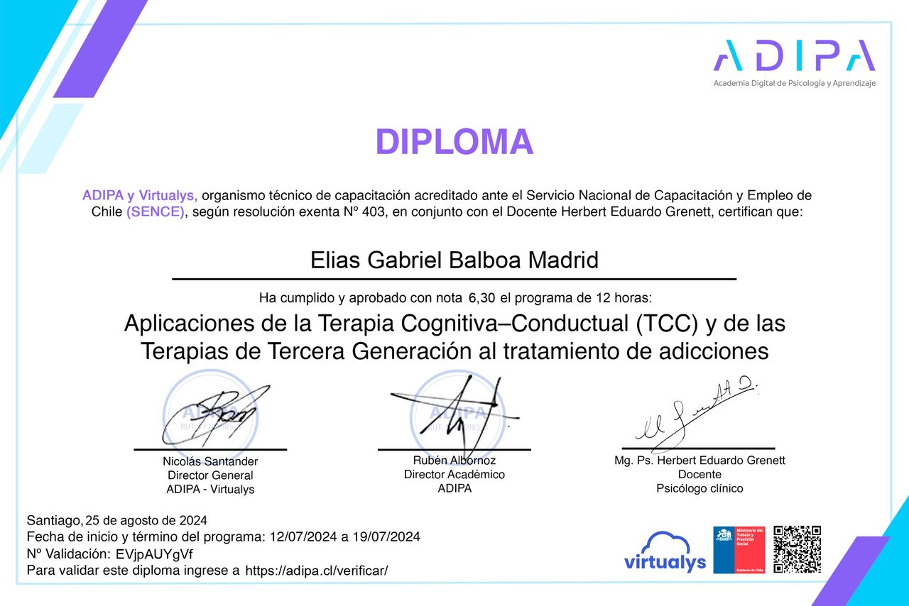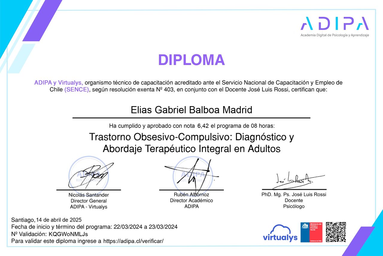 Actualmente estoy cursando un diplomado en la Universidad de Chile para continuar con mi especialización.