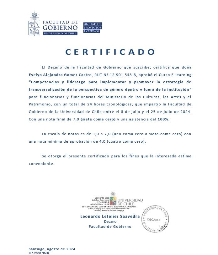 Asimismo, mi especialización en neuropsicología clínica fortalece la comprensión de los procesos cognitivos y emocionales desde una mirada interdisciplinaria. Mi práctica se orienta desde una perspectiva de género y derechos humanos, buscando acompañar a las personas en sus procesos terapéuticos con sensibilidad, rigurosidad clínica y compromiso ético.