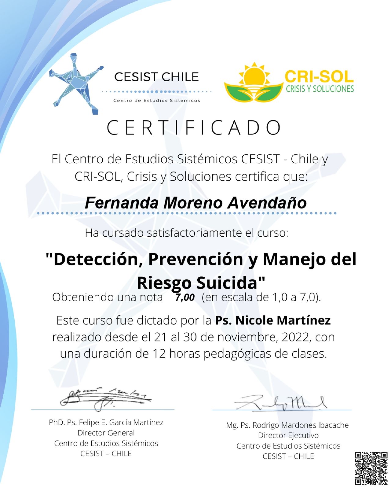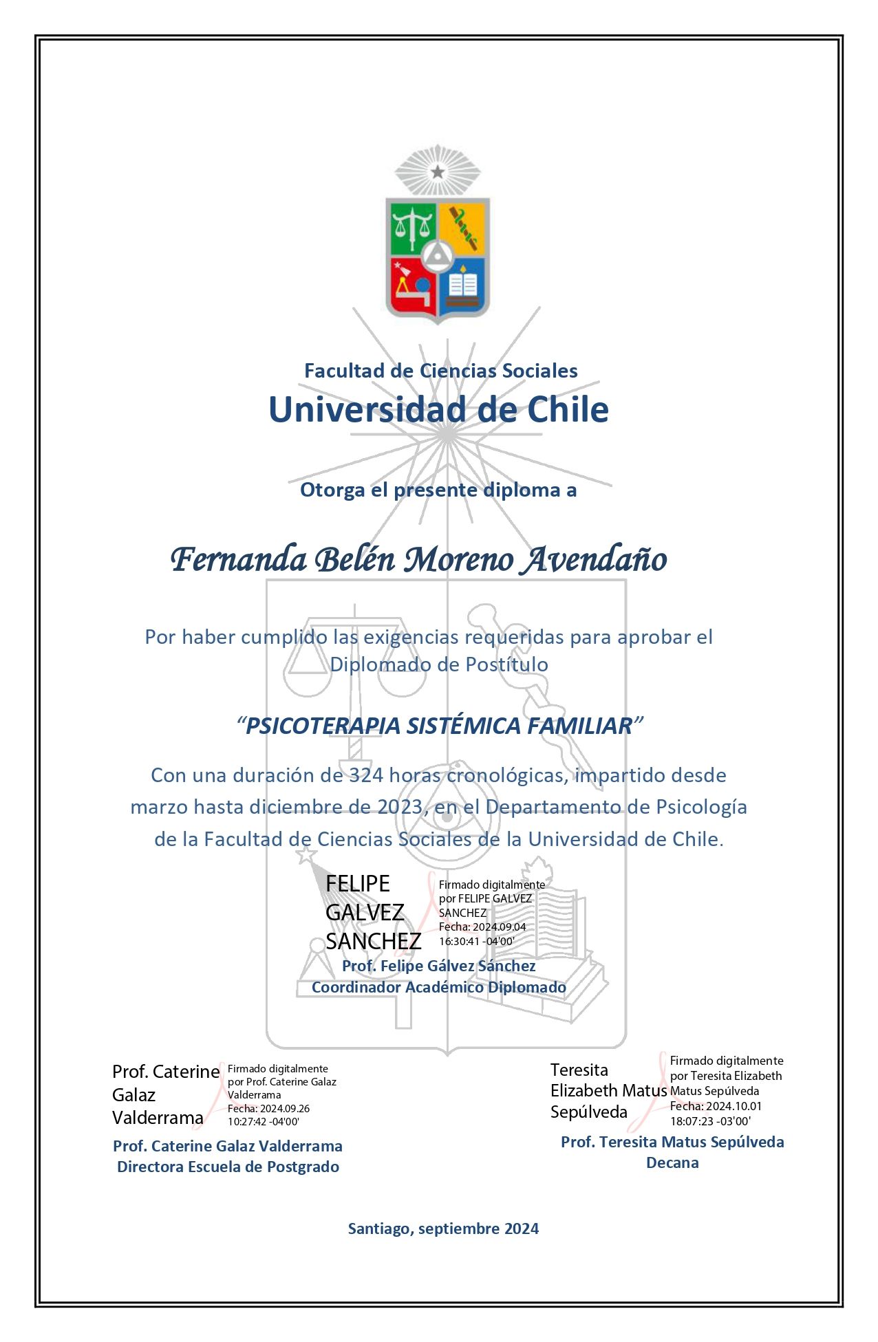 Psicóloga Clínica titulada de la Universidad de Chile, con enfoque sistémico relacional. Este enfoque comprende que el malestar no se origina únicamente en el individuo, sino que se construye en el marco de sus vínculos, historias y contextos de vida.