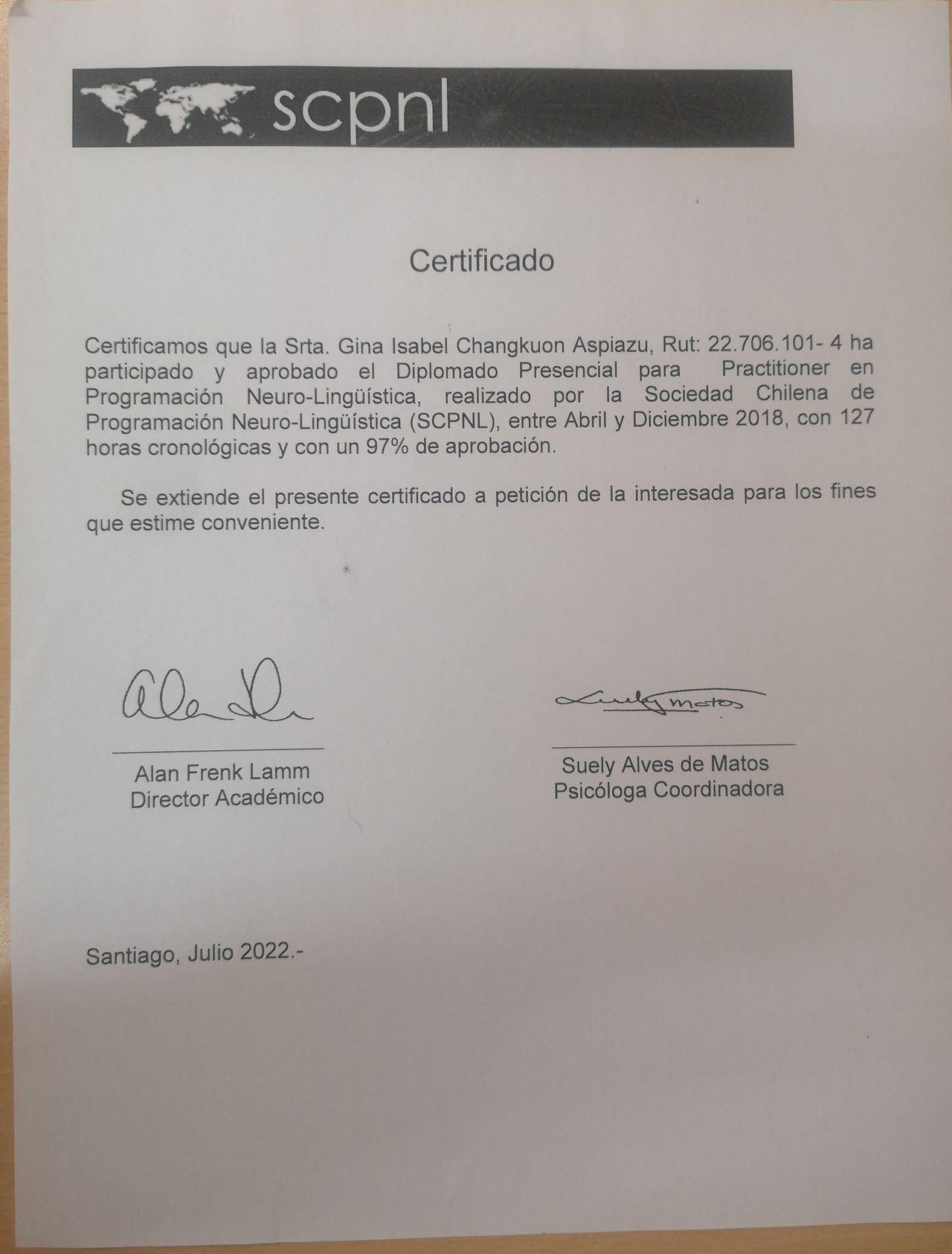 Coach motivacional en Programación Neurolingüística, con diplomado reconocido por la Sociedad Chilena de PNL.
