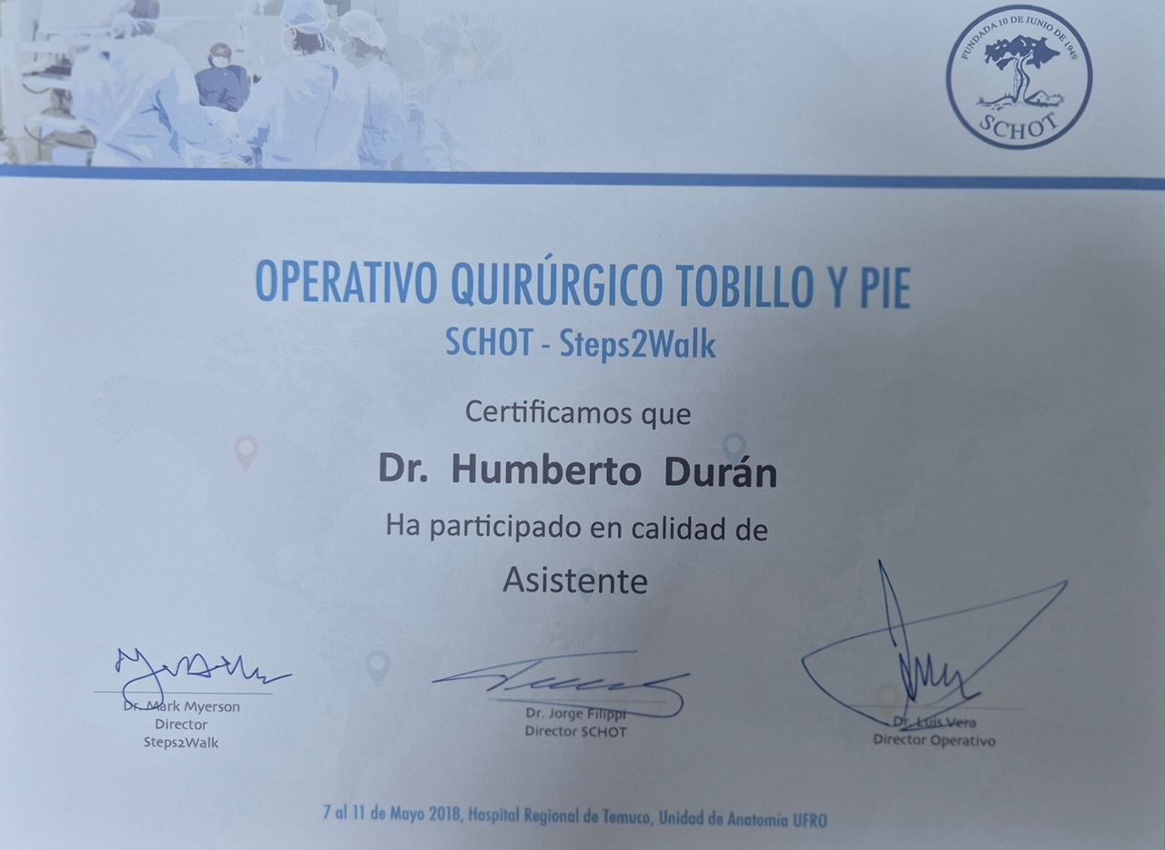 Medico traumatólogo , subespecialista en tobillo y pie desde hace 20 años.