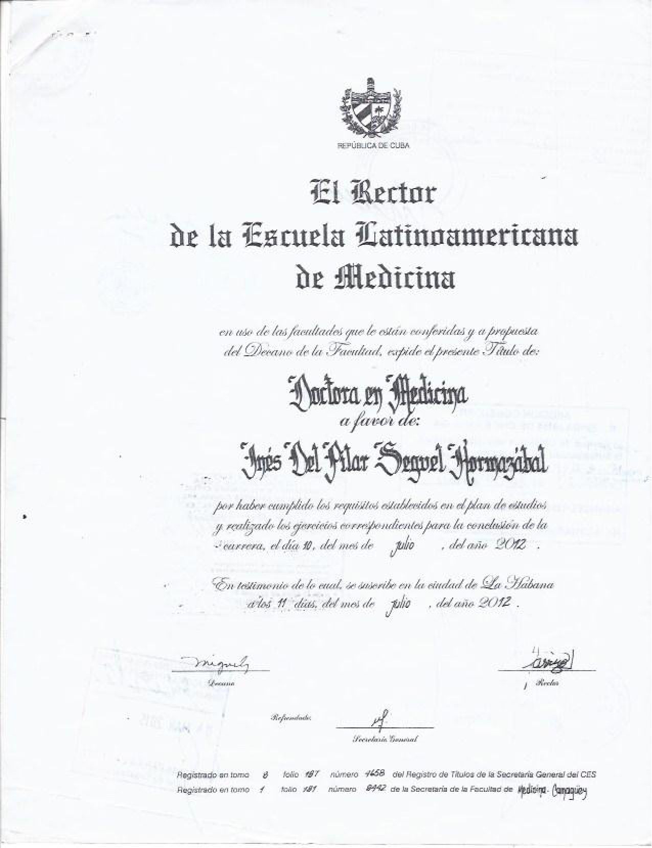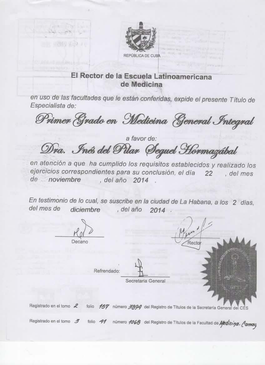 Núm. Colegiado: 545833 - Medico general / Sin registro en Conacem Dermatologia Sin registro en Conacem Médico Familiar