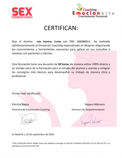 Excelente información, explica detalladamente, responde cualquier dudas y aparte deja los ejercicios para seguir practicando lo que se hablo en terapia. 1000% recomendado gente