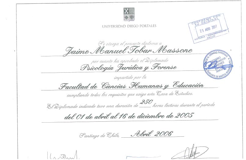 POSTÍTULO PSICOLOGÍA JURÍDICA Y FORENSE UNIVERSIDAD DIEGO PORTALES, 2005