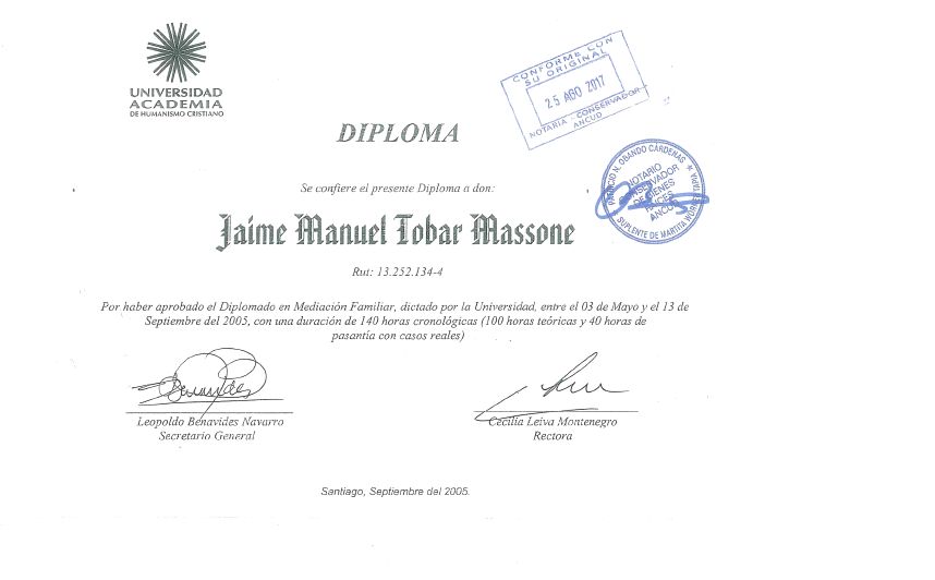 DIPLOMADO EN MEDIACIÓN FAMILIAR, UNIVERSIDAD ACADEMIA DE HUMANISMO CRISTIANO, 2005