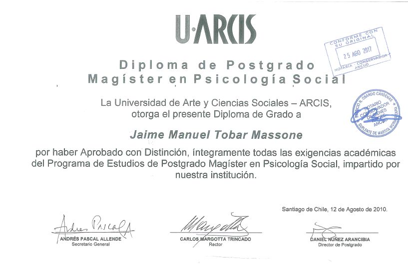 MAGÍSTER EN PSICOLOGÍA SOCIAL, UNIVERSIDAD ARCIS, 2010