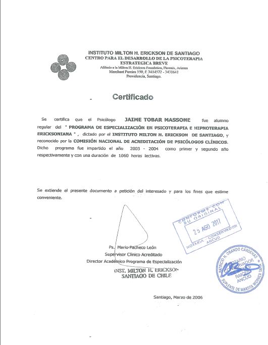 POSTÍTULO PSICOTERAPIA ESTRATÉGICA E HIPNOTERAPIA ERICKSONIANA, 2005