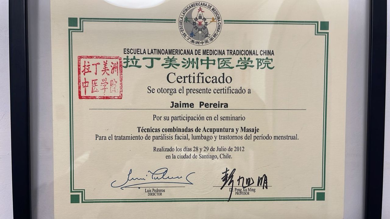 Posee especialidad en técnicas de acupuntura y masaje para el tratamiento de parálisis faciales, lumbagos, trastornos ginecológicos, tuina pediátrico (masaje chino para niños), además de tratamientos en problemas psicológicos (depresiones, crisis de pánico, ansiedad, etc..), tratamientos de columna, rodillas, lesiones deportivas, y todo tipo de desordenes hormonales y dermatológicos, perdida de peso, adicciones, entre otros.