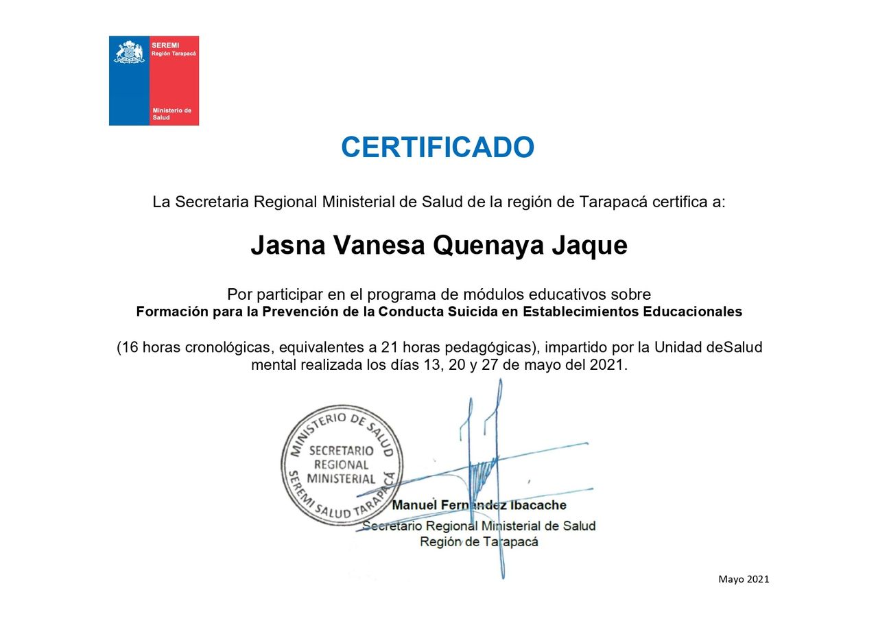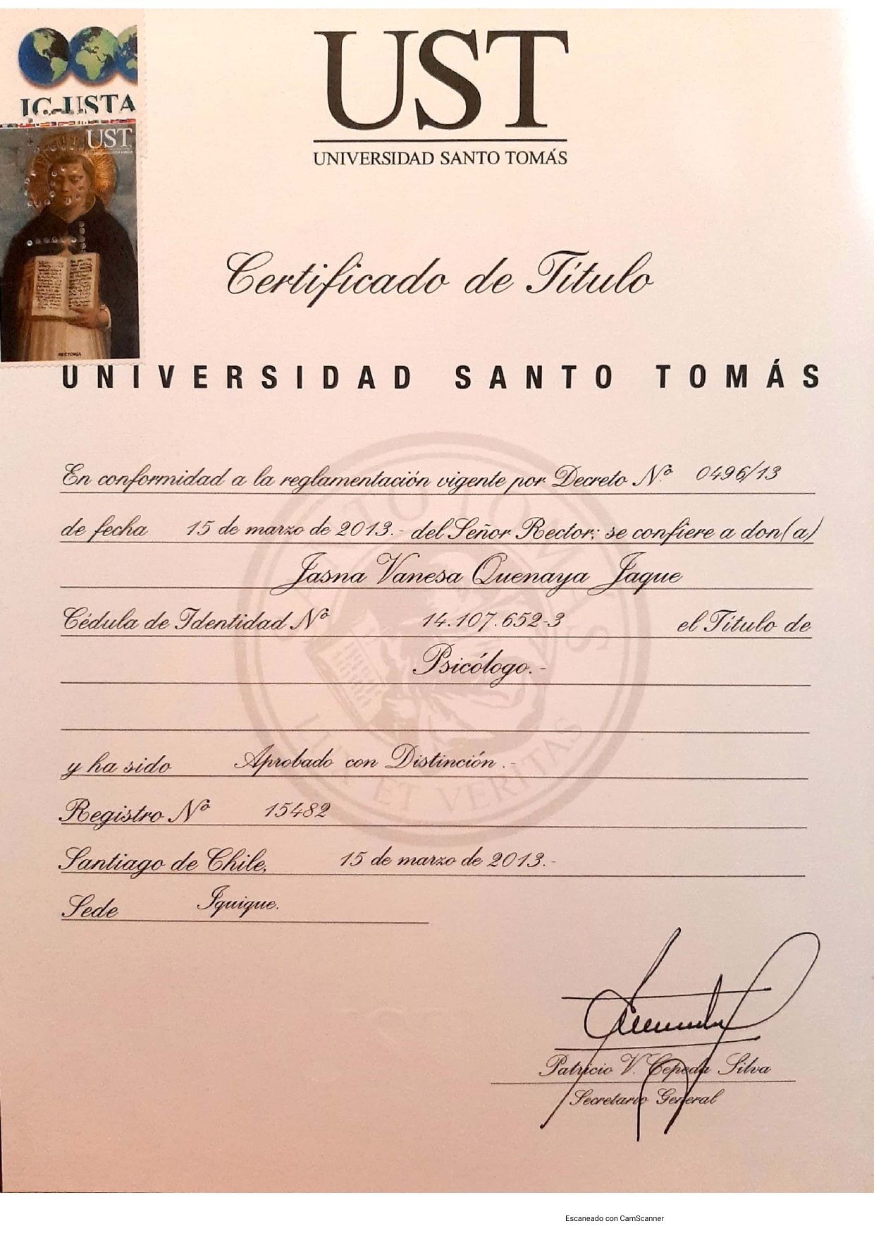 Felicitaciones srta. Jasna.• Psicóloga Jasna Quenaya • Intervención Terapéutica en Niños, Adolescentes y Padres •