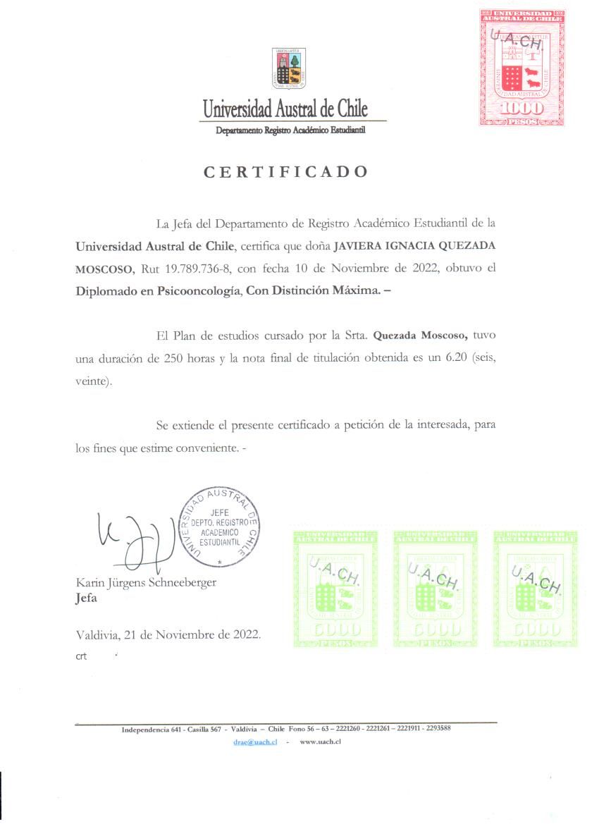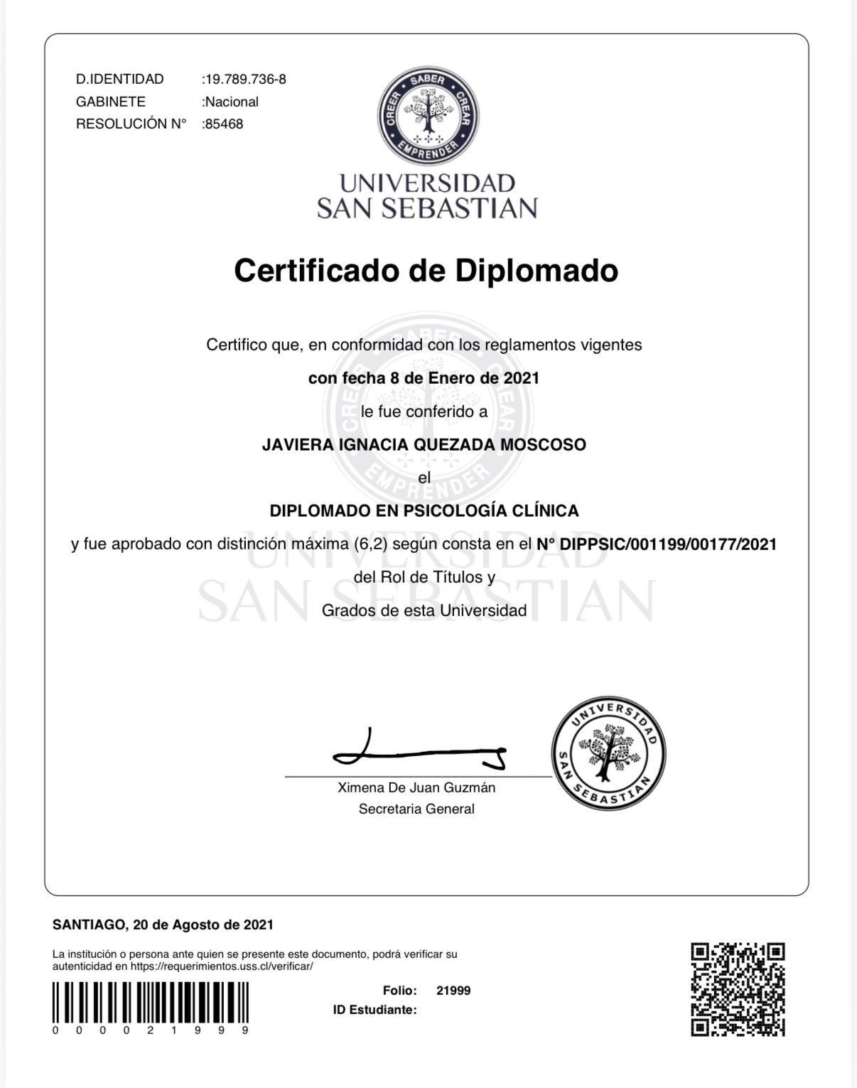 Cuento con diplomados en Psicología Clínica, Psicooncología e Intervención en Abuso Sexual Infantil, además de 5 años de experiencia en el trabajo terapéutico con población infanto-juvenil.