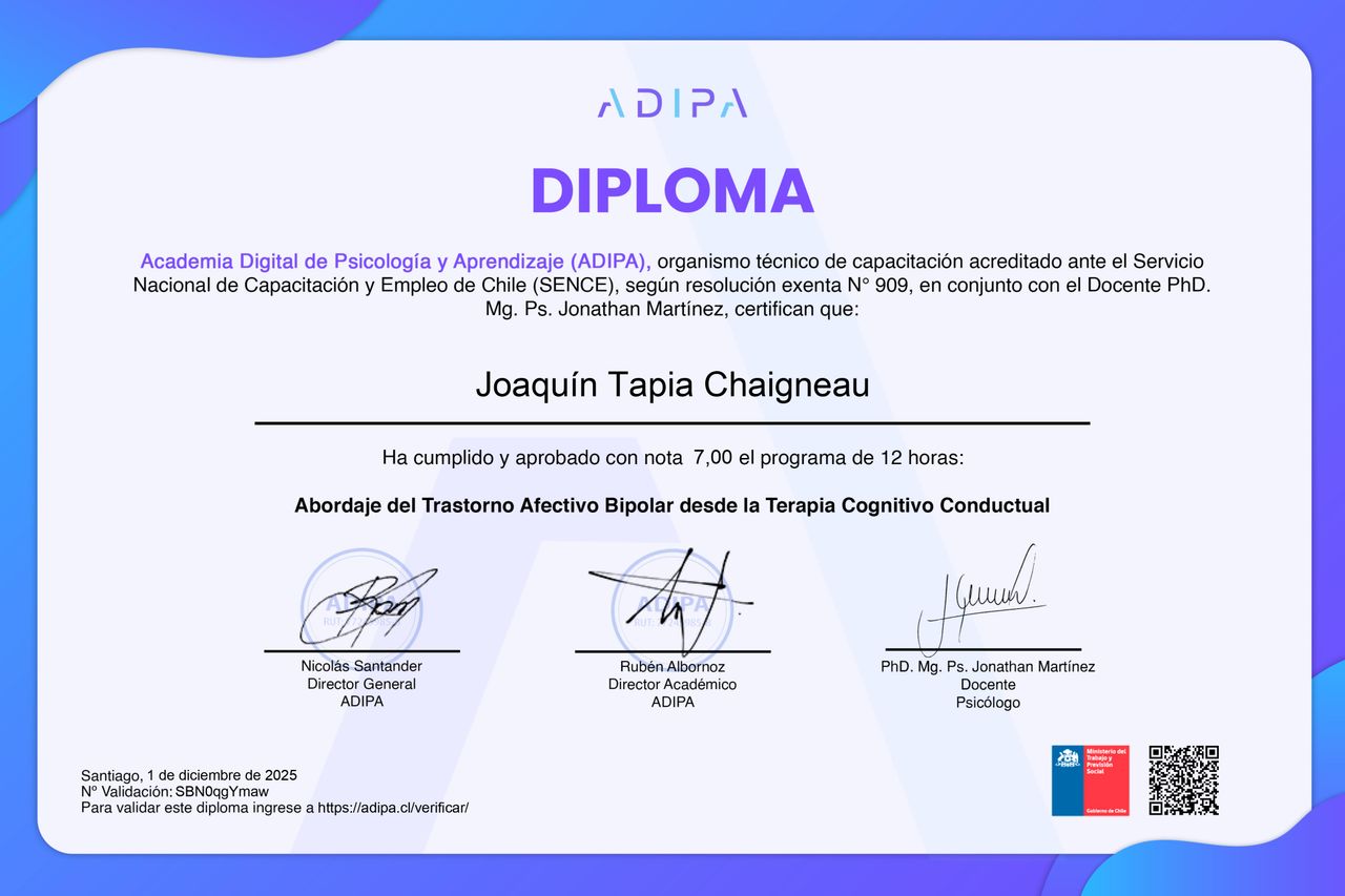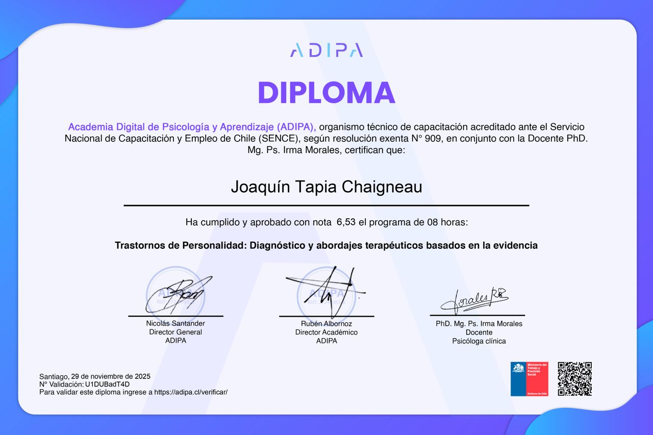 Experto en trauma, pareja, familia y personalidadMagíster en Psicología Clínica (UAI)Empatía, claridad y acompañamiento cercano
