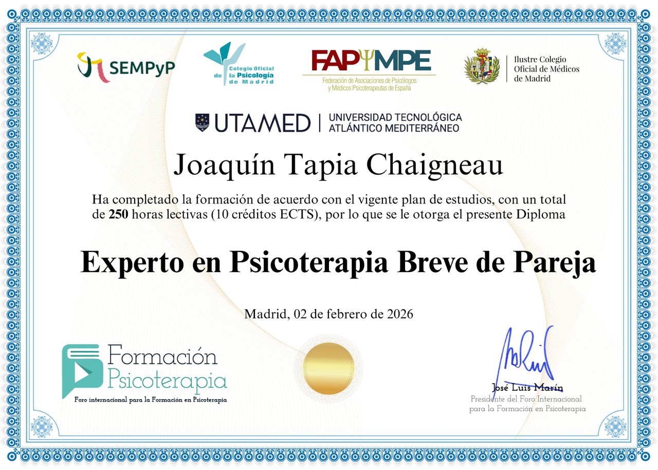 Asistí a terapia de pareja con Joaquín y aunque fue un proceso difícil, no tengo nada más que impresiones positivas de él como profesional. Sus intervenciones nos hacían pensar y ver las cosas desde otra perspectiva, lo que era muy necesario en ese momento. Se nota cuando alguien sabe lo que hace.