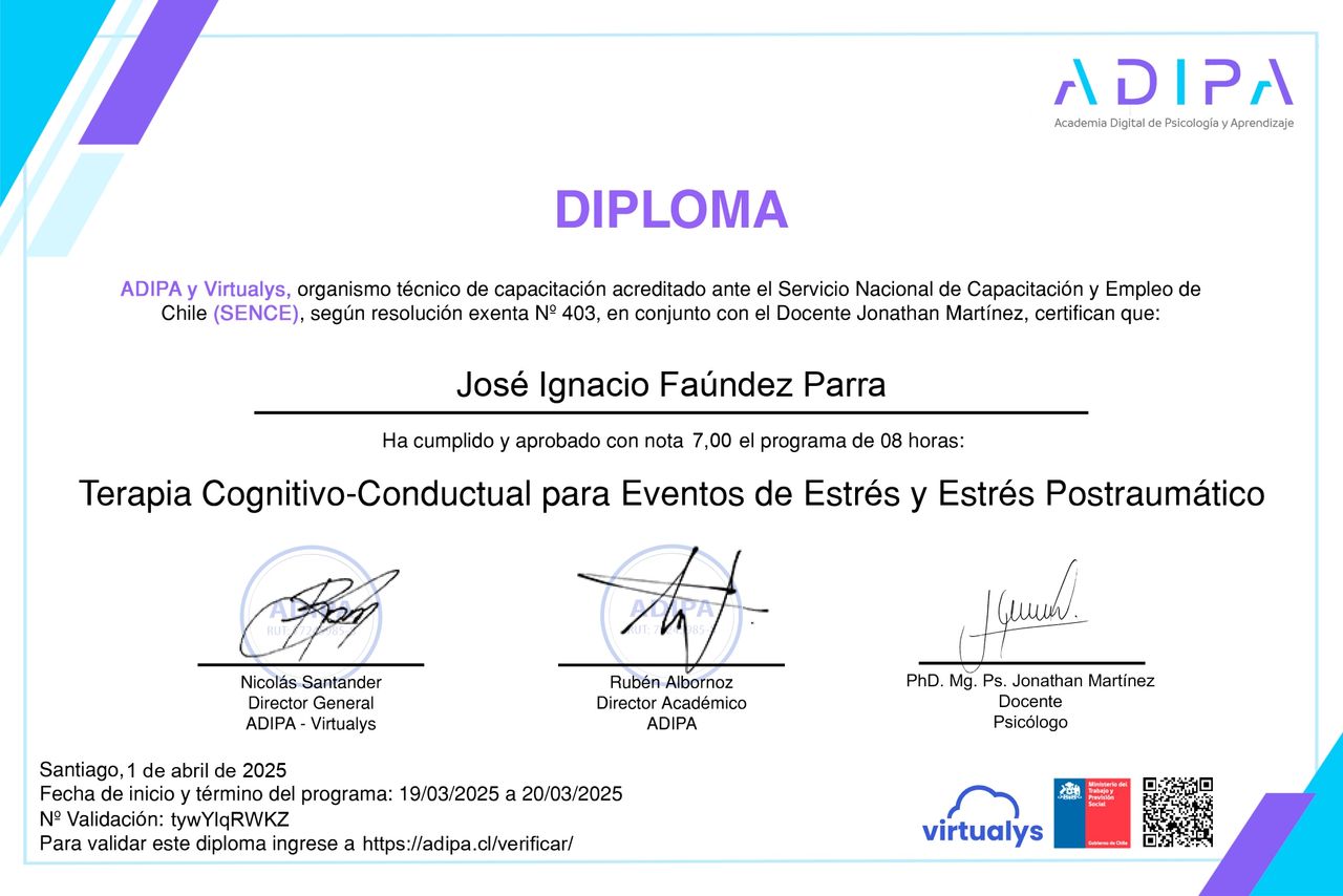 Soy psicólogo clínico, egresado de la Universidad Nacional Andrés Bello, donde me formé principalmente con un enfoque psicoanalítico; sin embargo, he ampliado mis conocimientos y habilidades interventivas, añadiendo otras perspectivas, para poder otorgar una atención personalizada y acorde a las necesidades de cada paciente.