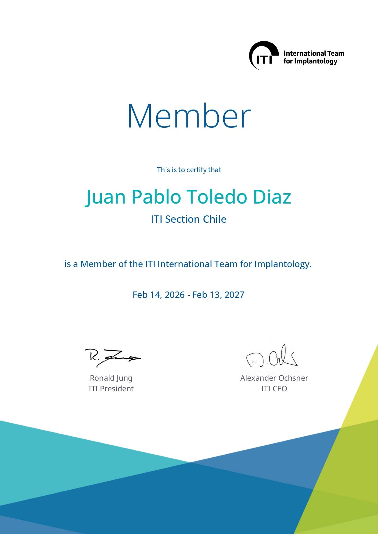 Soy Odontólogo egresado de la Universidad de Concepción en el año 2014. Soy especialista en Periodoncia e Implantología Oral, miembro de ITI (International Team for Implantology). Dedicado casi exclusivamente a tratamientos en base a implantes dentales, con un enfoque a la comodidad del paciente usando técnicas avanzadas de sedación profunda y las mas actuales técnicas de implantología digital.