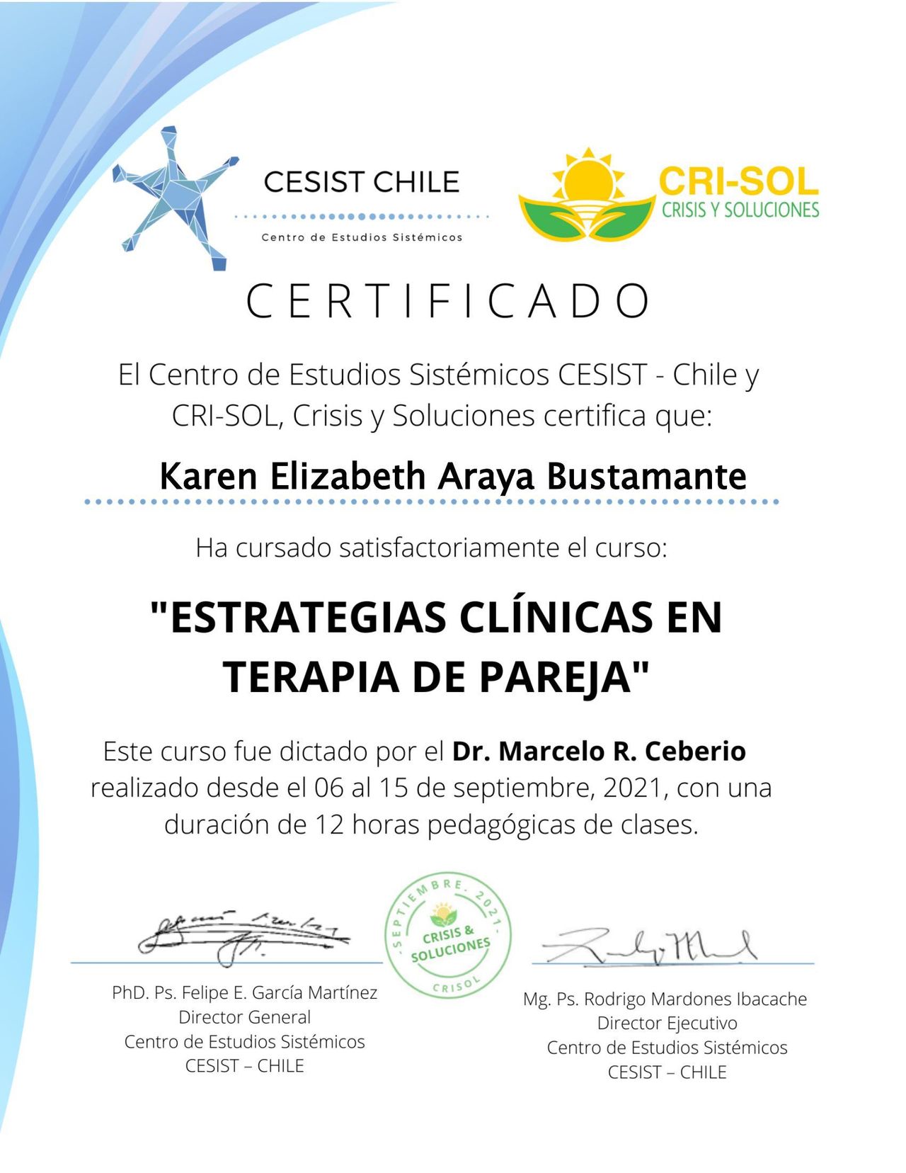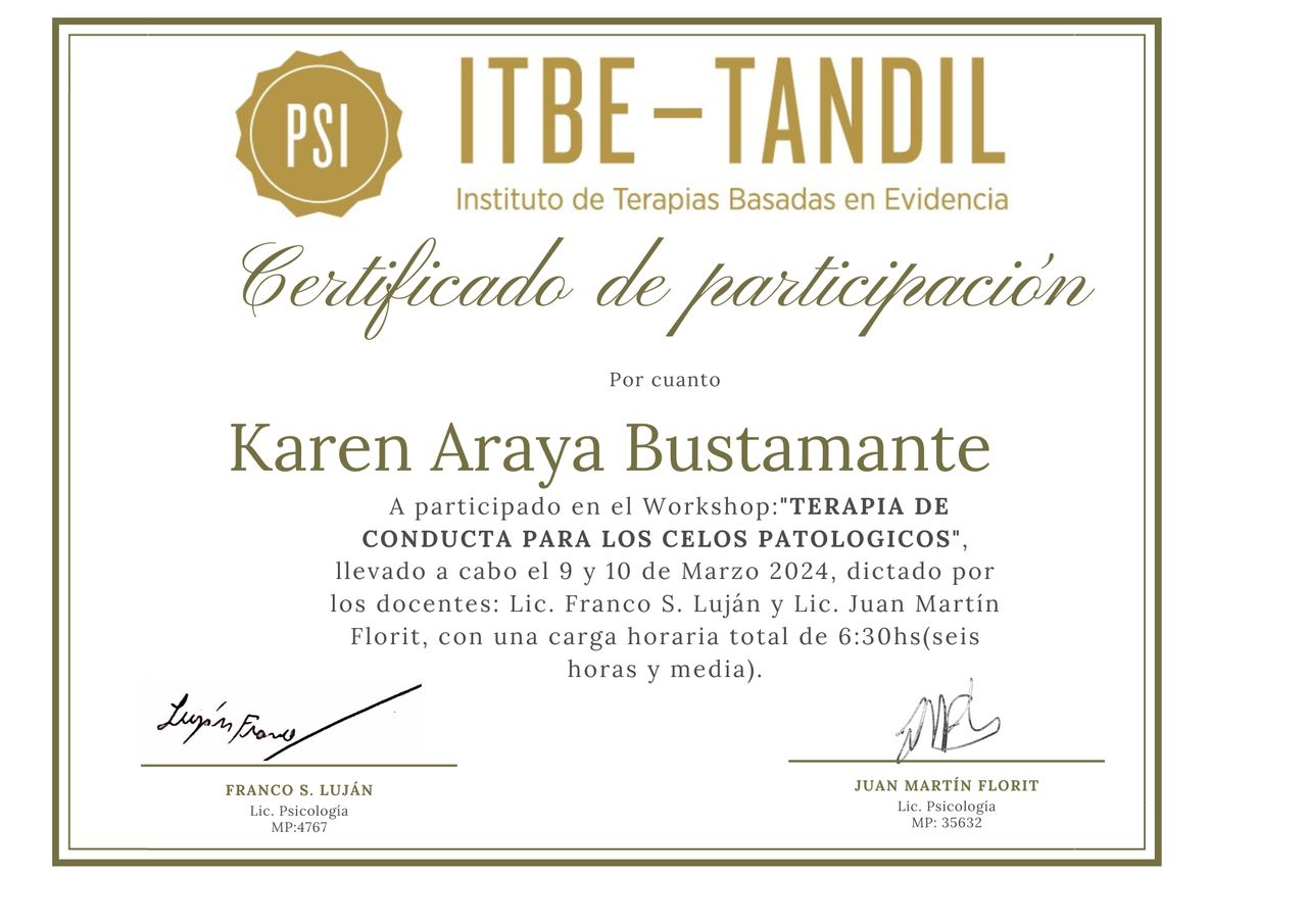 Karen es muy profesional en su quehacer. Apoya y guía muy claramente el proceso terapéutico, le cual lo hace de forma muy individualizada y acorde a las necesidades que se presentan. Genera un clima de confianza y seguridad propicio.