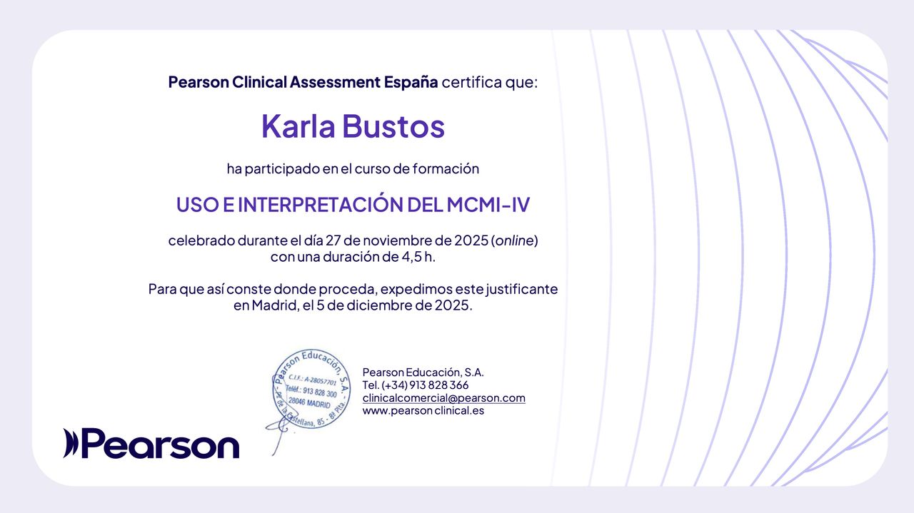 Carla es una exelente profesional, muy empática, cordial y con alto conocimiento clínico. Totalmente recomendable.