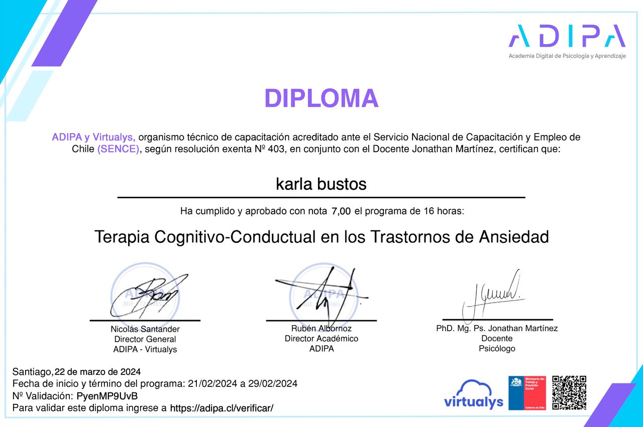 Si recomiendo a mi psicóloga de cabecera Karla Bustos. Muy agradecido saludos