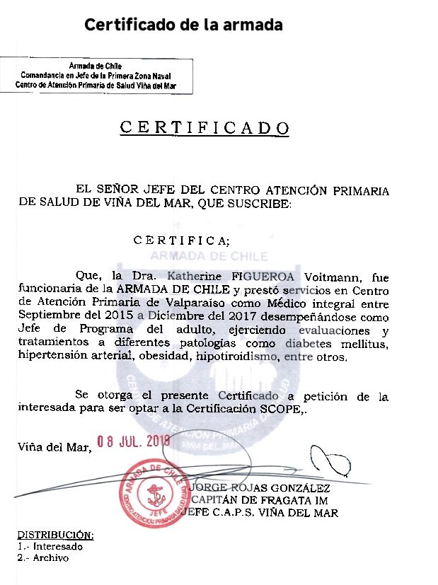 Médico Chilena, inscrita en Superintendencia de salud. Con amplia experiencia en la atención publica así como privada en control de enfermedades crónicas (ej: hipertensión y diabetes), control de peso y especialmente dedicada a la Salud mental (Diplomado en psiquiatría) dando un enfoque integral , empático y cercano al paciente.
