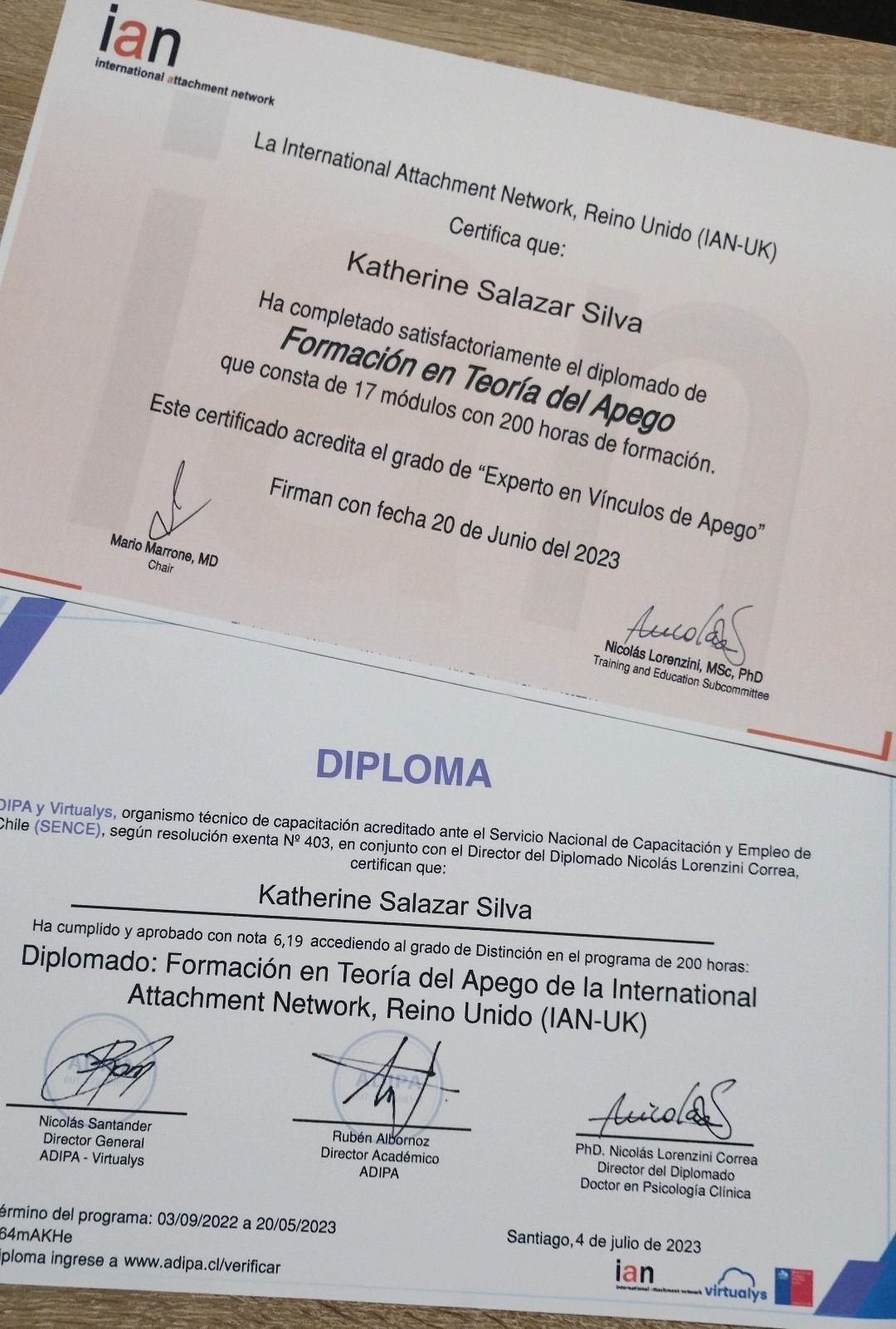 Experta en vinculos de apego acreditada por la International Attachment Network, Reino Unido