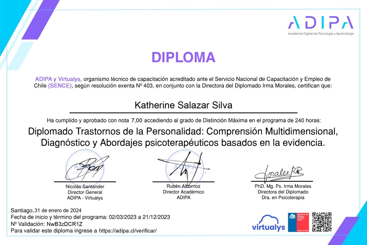 Diplomado en Trastornos de personalidad: comprensión multidimensional, diagnóstico y abordajes psicoterapeuticos basados en evidencia.