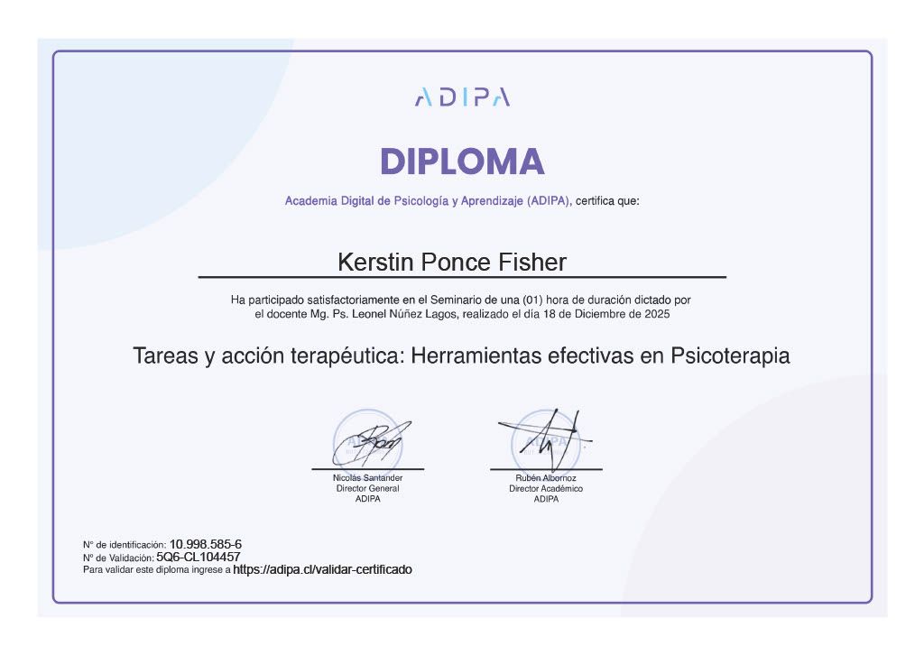 Kerstin fue muy amable y clara con las explicaciones, Al conocerla me sentí bienvenida por lo que me sentí en la confianza que necesitaba. Seguiré con ella, ya que estoy segura que lograré salir adelante.