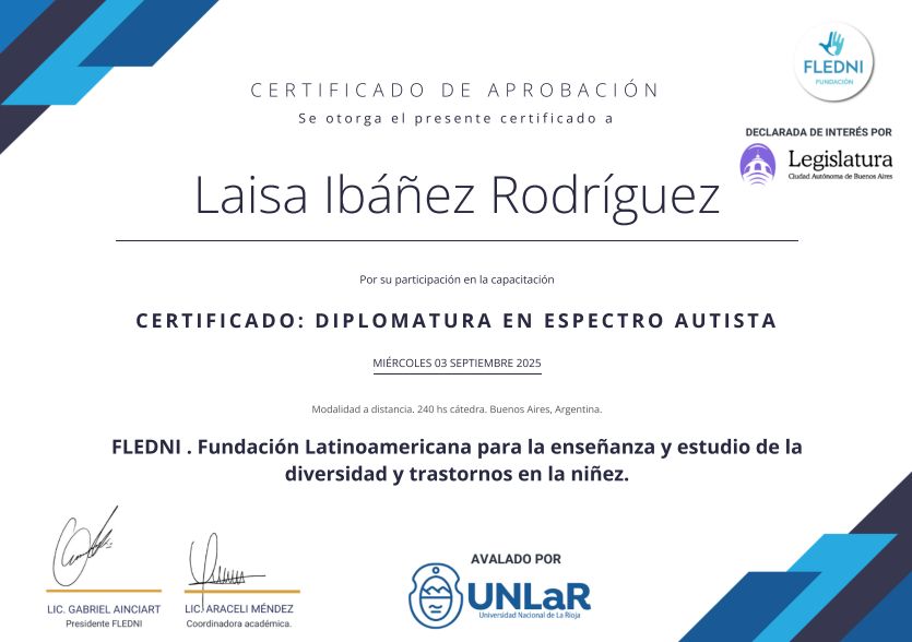 ¡Hola! Soy Laisa: Psicopedagoga, Profesora de Educación Diferencial, Licenciada en Educación, Magíster en Gestión Educacional, Diplomada en Coaching para Personas y Organizaciones, y Doctoranda en Política y Gestión de la Educación Superior, con 16 años de trayectoria. Estaré acompañando procesos Psico-educativos y Psico-laborales desde un enfoque social, neurocognitivo y sistémico, apoyando las necesidades de manera integral, con respeto y valoración de las potencialidades de cada persona. Mi horizonte terapéutico se centra en crear un espacio seguro, amoroso y colaborativo, donde se fomente el bienestar. Conmigo encontrarás abordaje en: -Evaluación y Diagnóstico Psicopedagógico. -Construcción de Informes Psicopedagógicos. -Trastornos del Neurodesarrollo. -Alteraciones del Lenguaje Expresivo, Receptivo o Mixto. -Procesos de Estimulación de Lectura y Escritura con diferentes métodos. -Dificultades Especificas de aprendizaje. -Problemas de atención, memoria y organización. -Técnicas de estudio. -Exploración vocacional. -Diseño de proyecto de vida post-secundario. -Carta de ajustes razonables. -Acompañamiento familiar en la etapa escolar. -Coaching de personas en el entorno laboral y universitario. -Presentaciones en público: oralidad, estrategias de persuasión y comunicación efectiva. ¡Les espero!