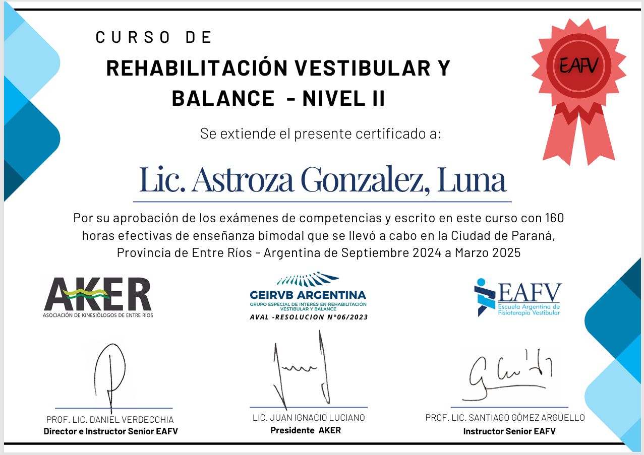Especialista en Kinesiología deportiva (DENAKE).