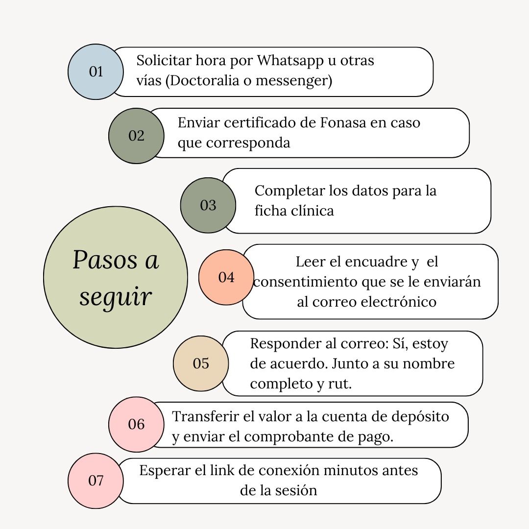 -El consultante debe preocuparse de consultar por la cuenta bancaria de la profesional y por el consentimiento informado. A través de whatsapp o correo electrónico.