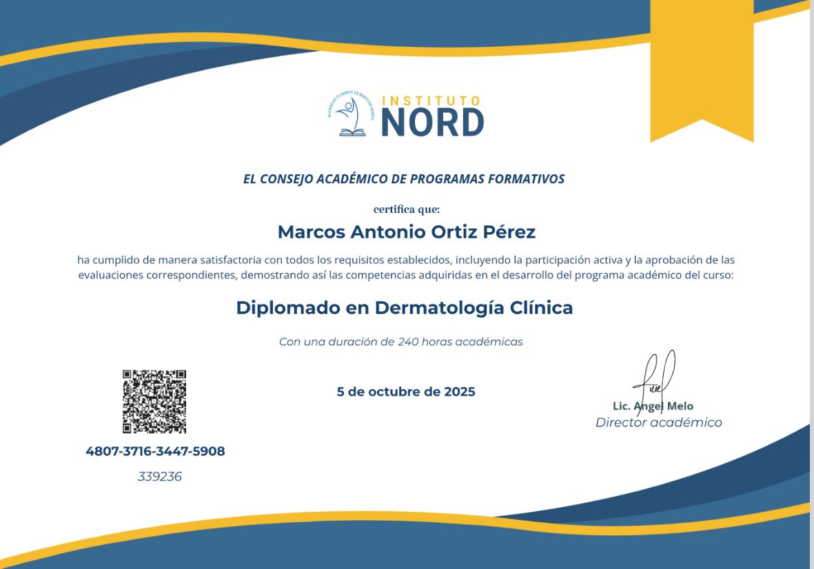 Soy Medico Cirujano Con Maestría en Dermatología clínica y Magister en Medicina Estética Integral , especializado en el diagnóstico, tratamiento y prevención de enfermedades y condiciones de la piel, cabello y uñas. experto en el cuidado de la piel y puedo tratar una amplia variedad de afecciones dermatológicas, como acné, eczema, psoriasis, alopecias, micosis superficiales , onicomicosis, verrugas, entre otras. Atención a pacientes desde los 12 años .