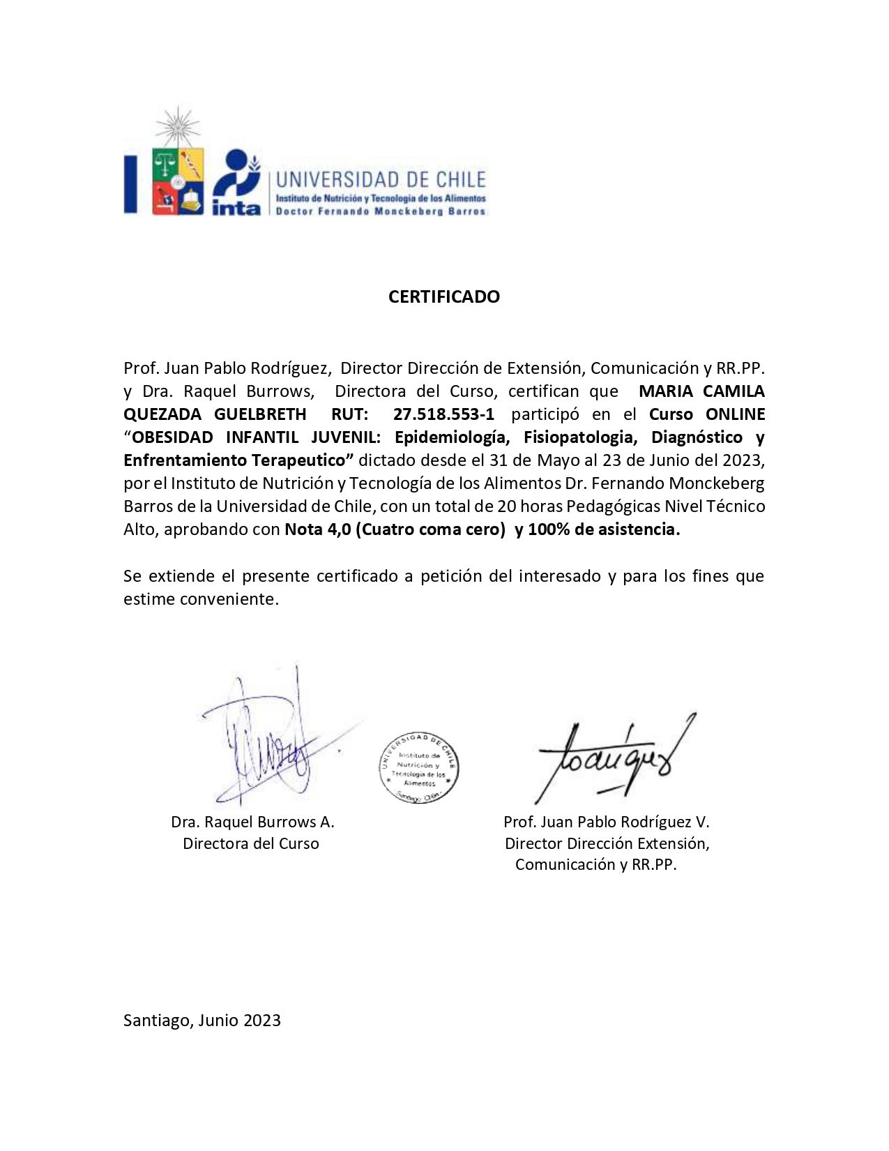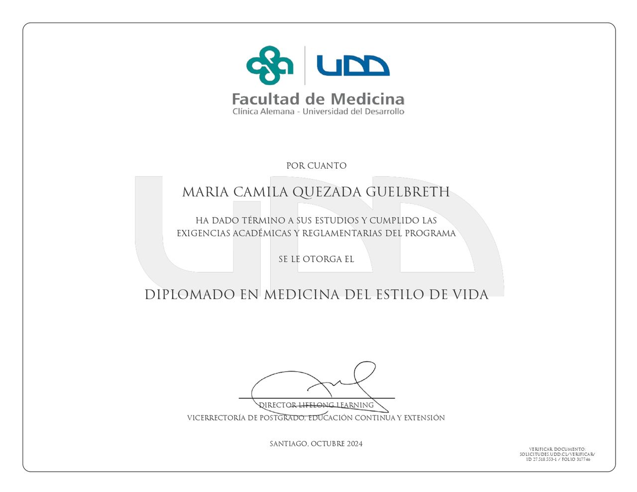 Cuento con formación en Medicina del Estilo de Vida y actualmente curso un Magíster en Nutrición, lo que complementa mi práctica clínica con herramientas basadas en evidencia científica.