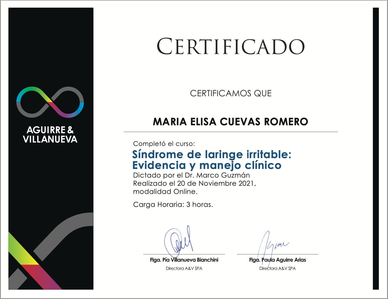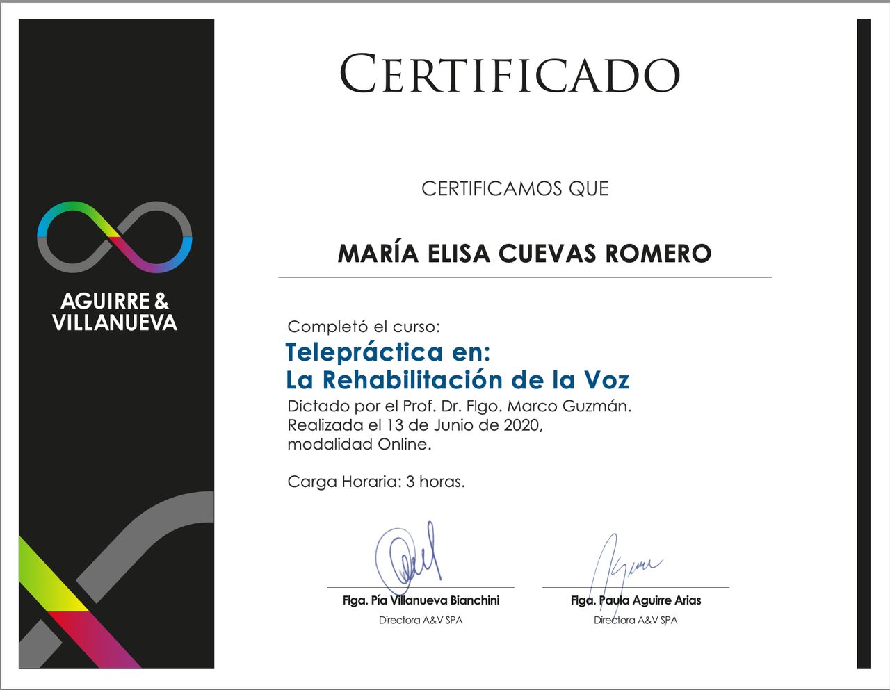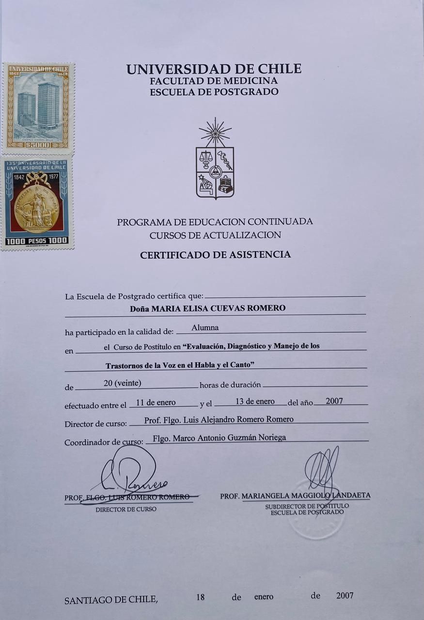 Hoy tengo un tono de voz que siento más natural, un mejor control fonorespiratorio, técnicas para aumentar volumen y proyectar sin esfuerzo, estrategias para cuidar mi voz en el día a día, entre otros. Ello me ha permitido aumentar la confianza en mi desempeño como docente, pues gracias al proceso que he vivido con María Elisa, sé que todos mis estudiantes podrán escucharme con facilidad. Fue la mejor decisión.• Consulta Fonoaudiológica privada : Fonoaudiología.Cuevas • Primera visita Fonoaudiología •